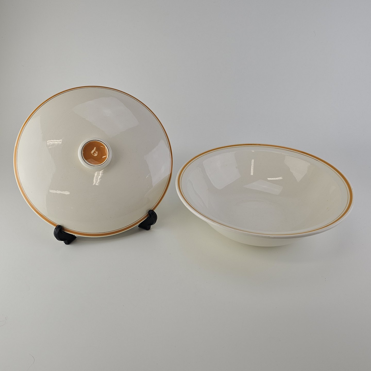 Fajancestel i stelform G med dekoration af orange stribe