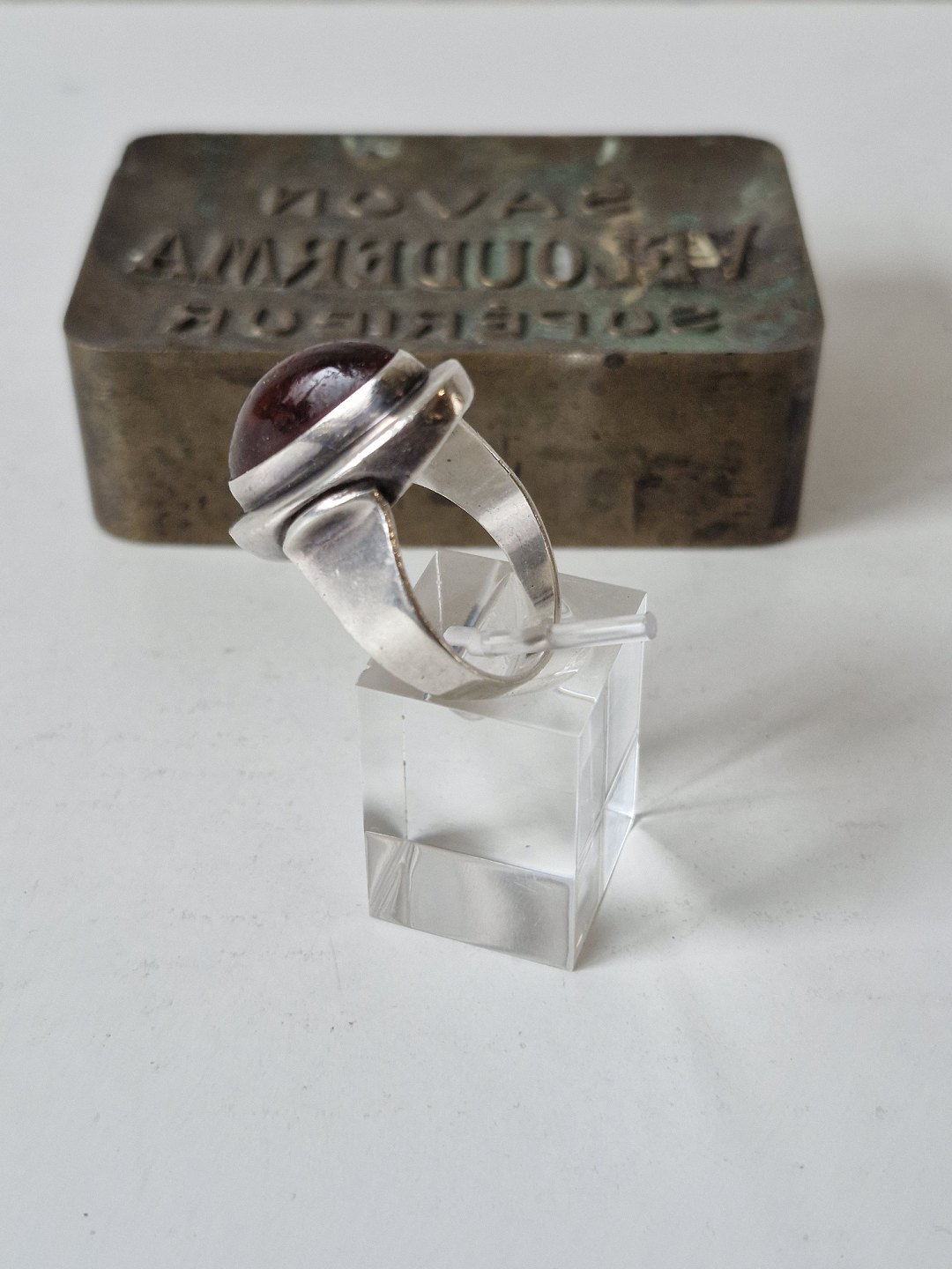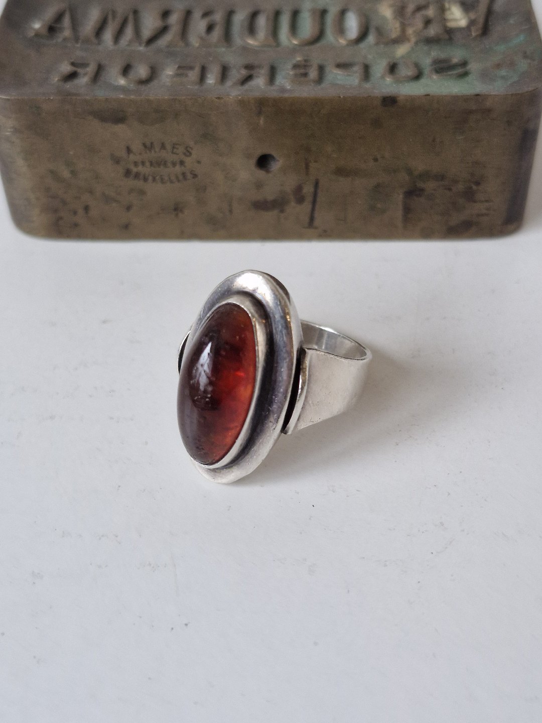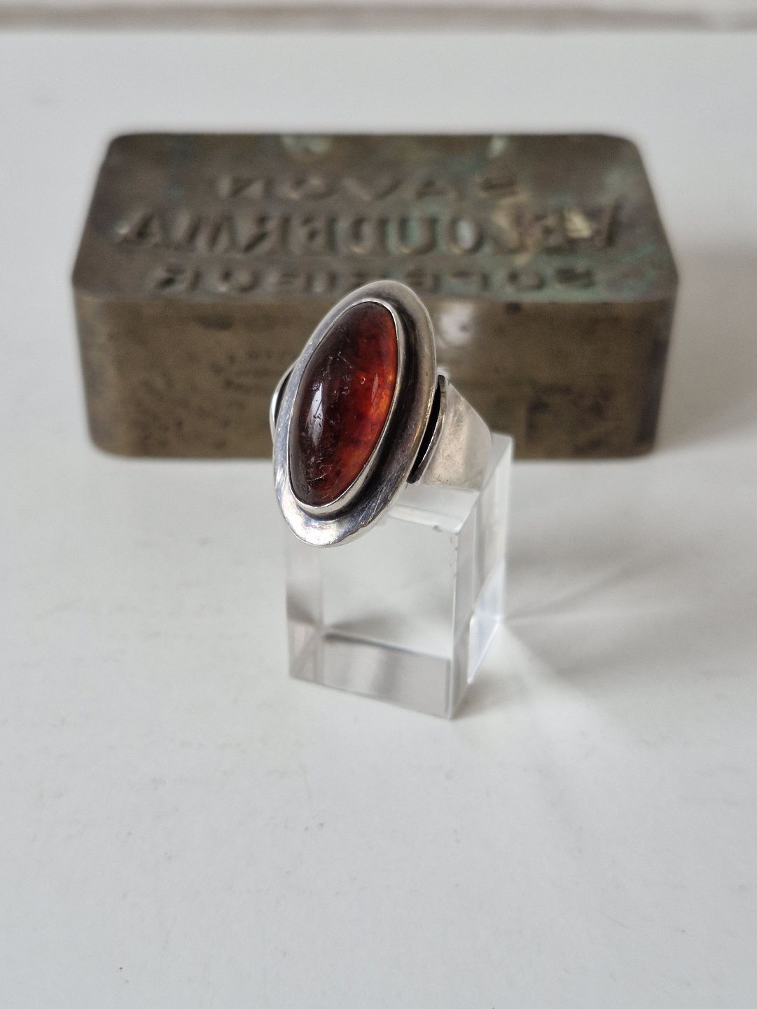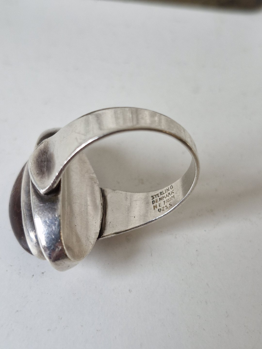 Text zugänglich auf Dänische: N.E.From vintage ring i sterlingsølv med oval ravperle