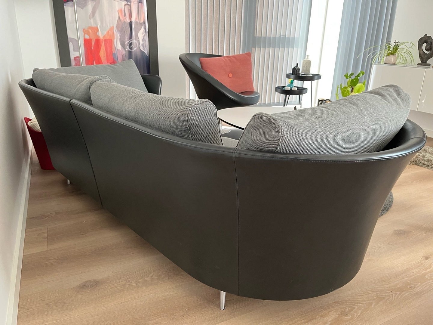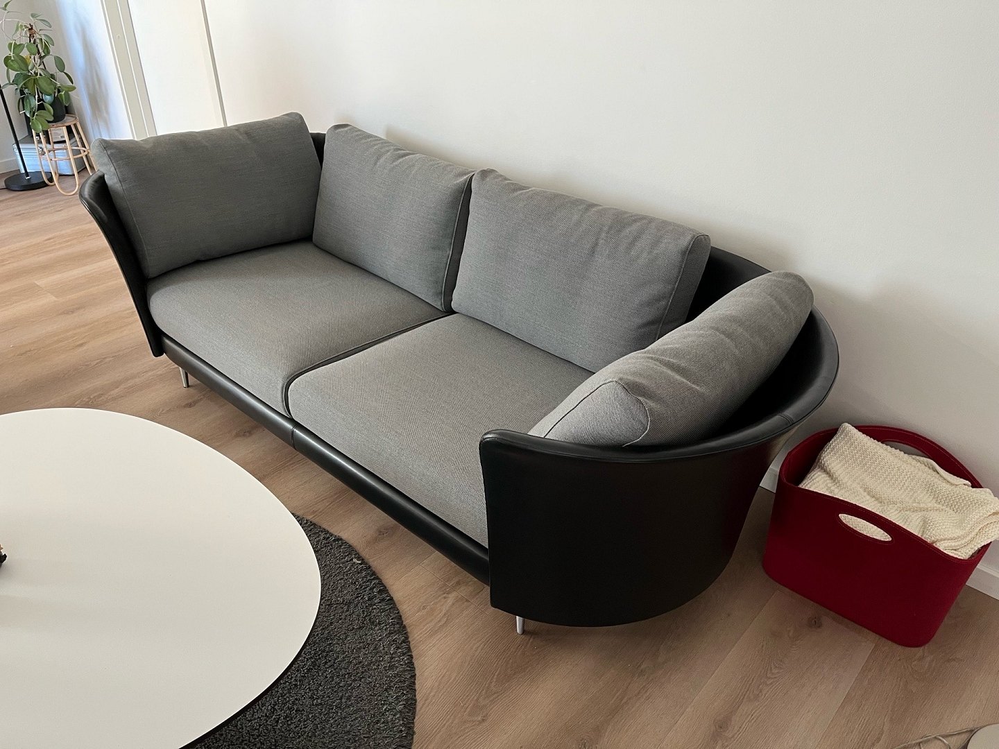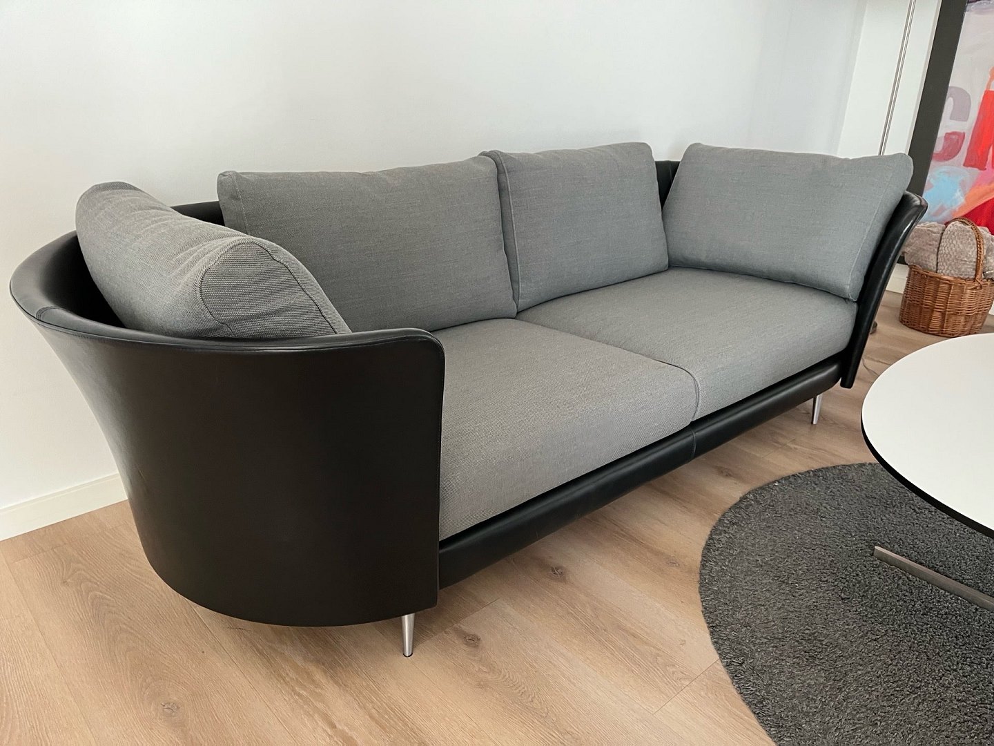 Exklusives Mogens Hansen Vascas Sofa in schwarzem Preston-Leder und Hallingdal-Stoff. Originalpreis: 51.975,-. Dieses exklusive Vascas Sofa von Mogens Hansen besticht durch sein hervorragendes Design und kombiniert schwarzes Preston-Leder mit hochwertigem Hallingdal-Stoff. Das Sofa ist mit eleganten Spike-Fußleisten ausgestattet. Die Beine in matter Ausführung unterstreichen das stilvolle Design. Die Uhr wurde im März 2020 geboren und hatte nur einen Besitzer. Sie stammt aus einem Nichtraucherhaushalt ohne Haustiere und Kinder und wurde nur wenig täglich im Wohnzimmer benutzt. Der Riemen ist daher nahezu neuwertig und in einem sehr guten Zustand. Das Design zeichnet sich durch eine eng geschwungene Außenschale aus, die einen schönen Kontrast zum weichen, bequemen Stoff bildet. Das Modell Vascas kombiniert Leder und Stoff an Gestell und Kissen und unterstreicht so den charakteristischen Ausdruck des Sofas. Es entsteht ein elegantes Zusammenspiel zwischen dem straffen Äußeren und dem einladenden Inneren