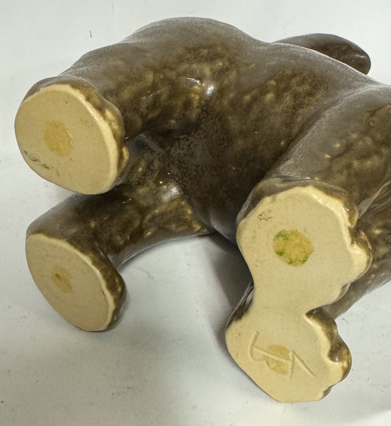Figur i keramik udført af Knud Basse (1916-1991) på sit værksted i Vang på Bornholm. Brun glaseret. Fremstår i god stand. Signeret med KB. Mål: H. 22 cm L. 17 cm B. 7,5 cm