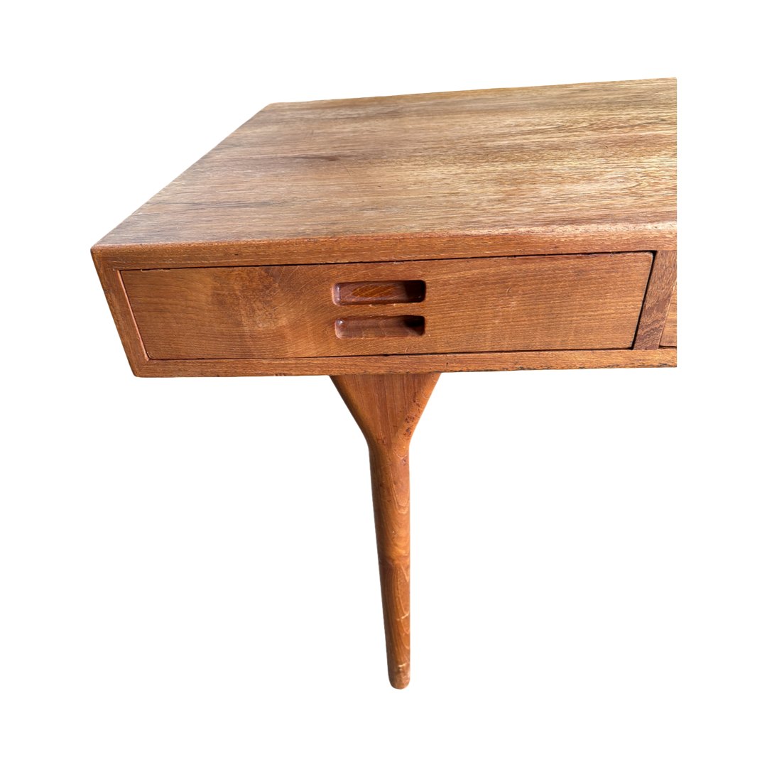 Smukt og elegant skrivebord designet af Nanna Ditzel, udført i massiv teak med de ikoniske, organiske former og lette linjer, som kendetegner dansk mid-century design i absolut topklasse.