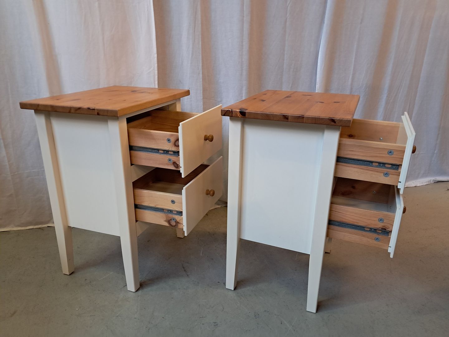 2 Kommoder i fyrretræ og laminat, af nyere dato.
