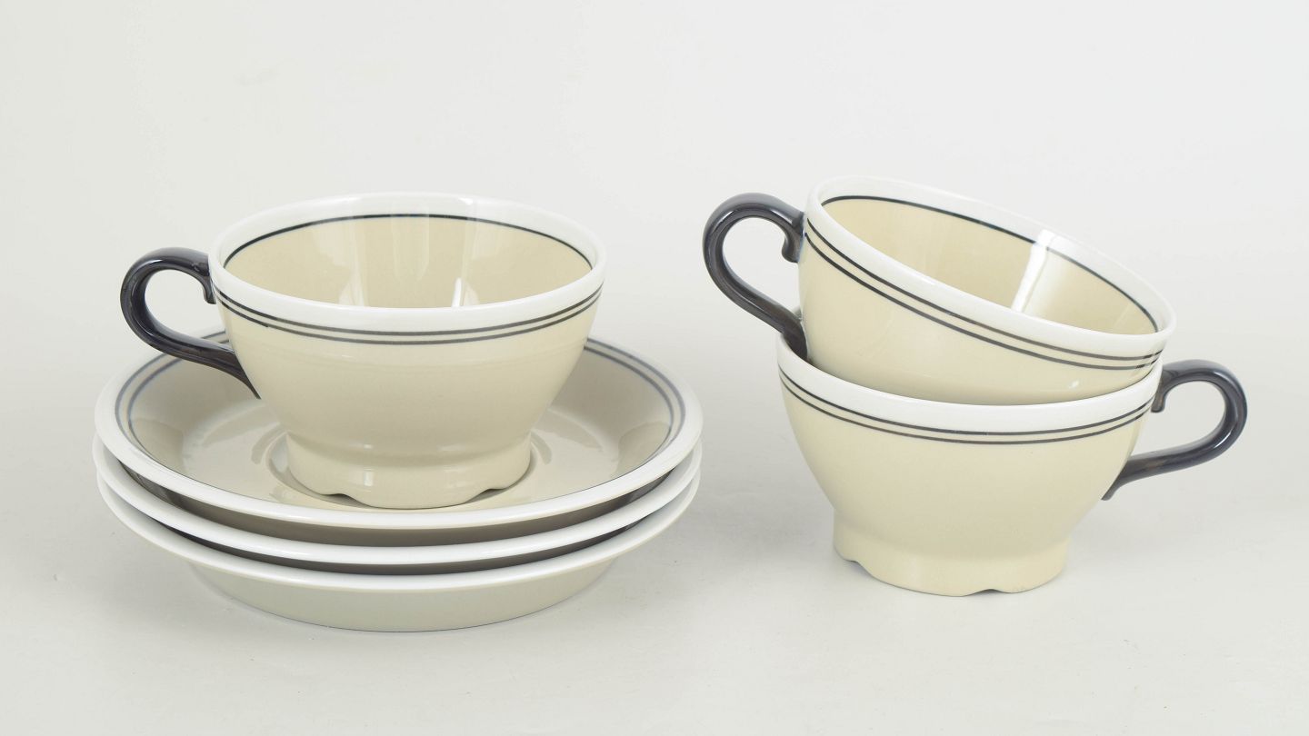 Text zugänglich auf Dänische: Jackie Lynd for Rörstrand, sæt af tre tekopper med tilhørende underkopper “Nocturne”.
