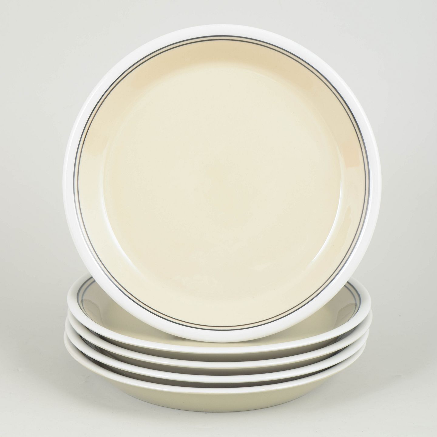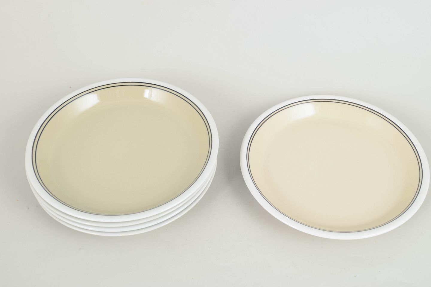 Elegante tallerkener i fajance med enkel, raffineret glasur i lyse toner. Designet “Nocturne” fremhæver en minimalistisk og funktionel æstetik typisk for Rörstrand i 1960’erne.