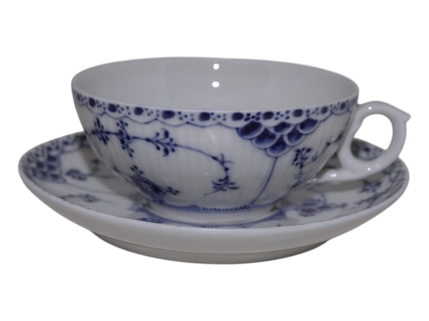 Royal Copenhagen Musselmalet Halvblonde, lille chokoladekop med tilhørende underkop.