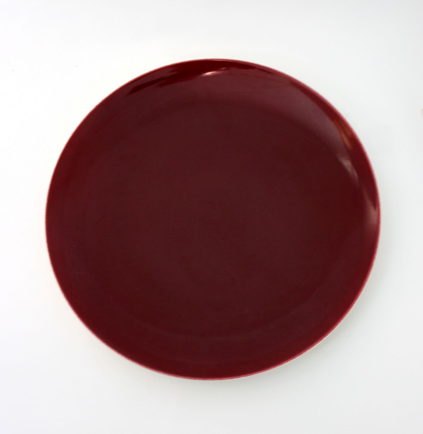 Text zugänglich auf Dänische: Aluminia, Confetti smukke bordeaux glasserede middagstallerkener. Efterhånden sjældne i flot stand og den store størrelse, disse har lettere almindelig brugsslid i form af småridser i overfladen. Nr. 5. Diameter 25,5 cm. Pris: 350 kr. stk. Lager: 4