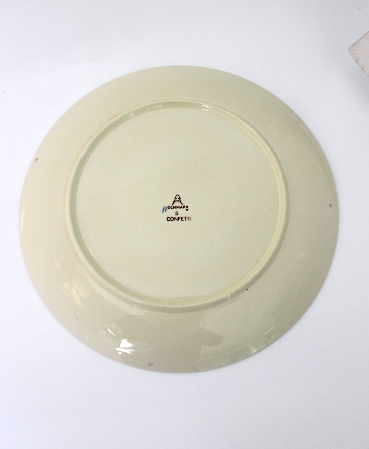 Text zugänglich auf Dänische: Stor middagstallerken, 25,5 cm. Confetti, Aluminia
