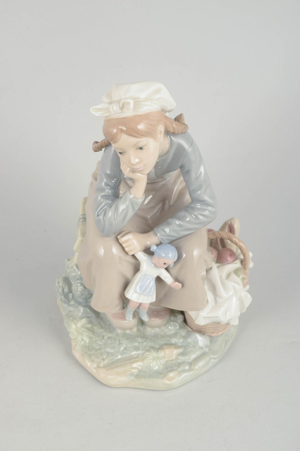 Text zugänglich auf Dänische: Lladró figur, siddende pige med dukke.