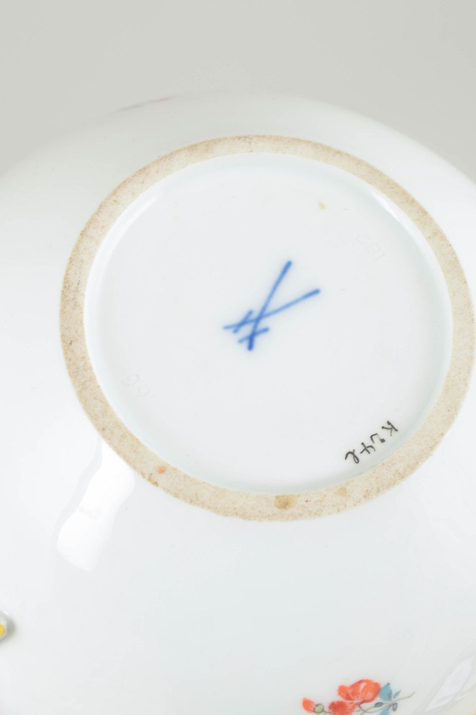 Meissen, tekande med polykrom blomsterdekoration.