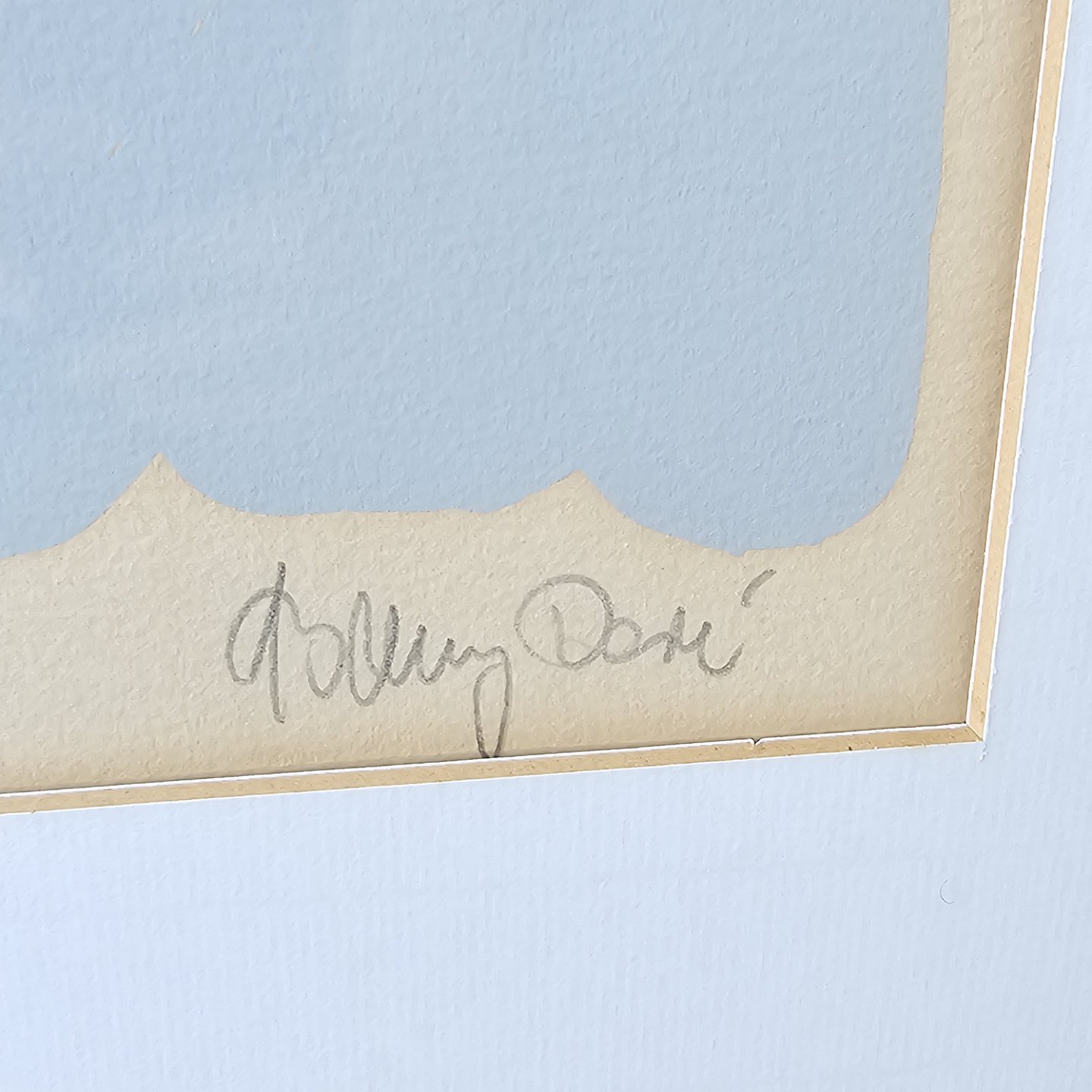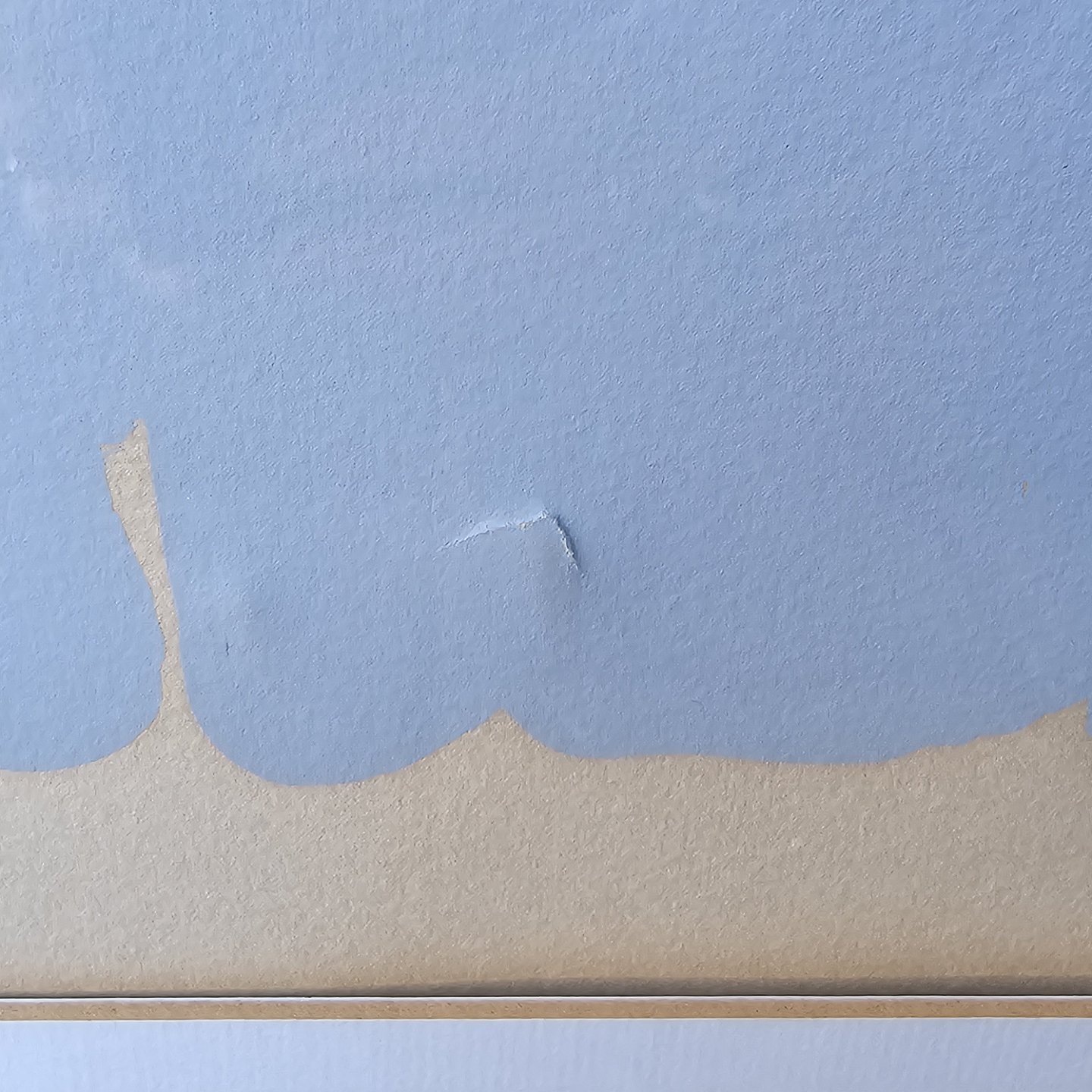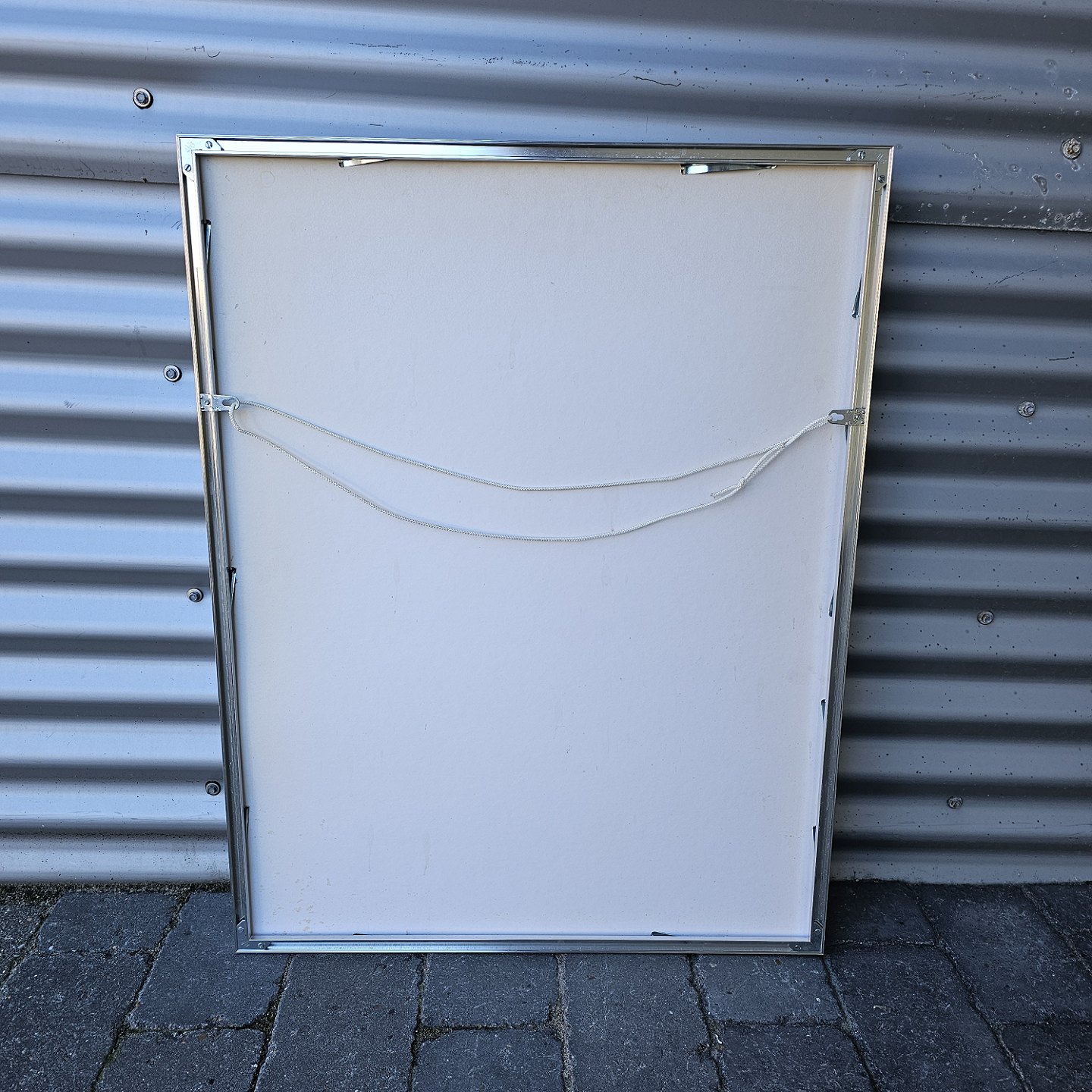 Litografi på papir med abstrakt motiv i sort, gul og rød monteret i sølv ramme