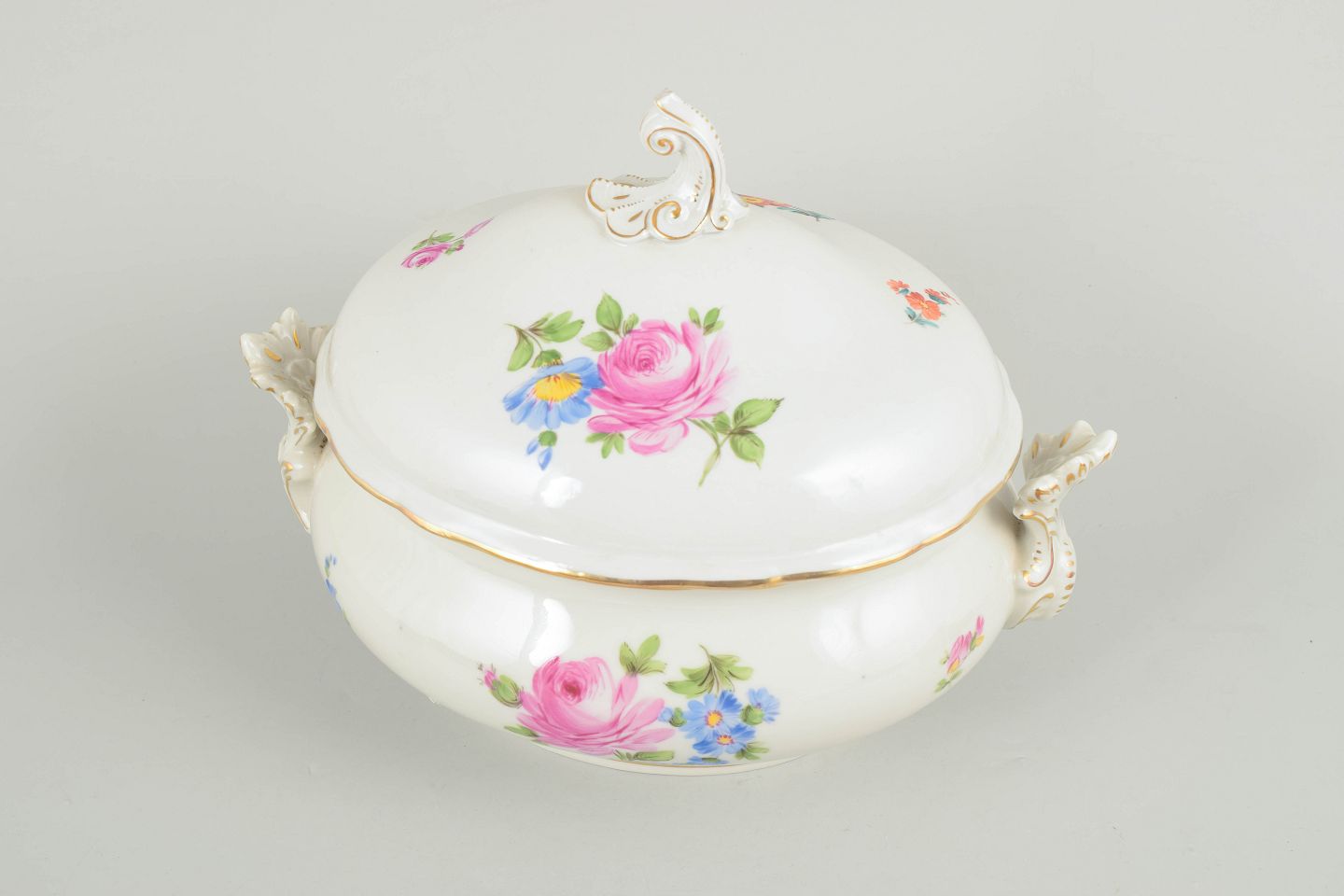 Text zugänglich auf Dänische: Meissen stor terrin med låg, Saksisk blomst.