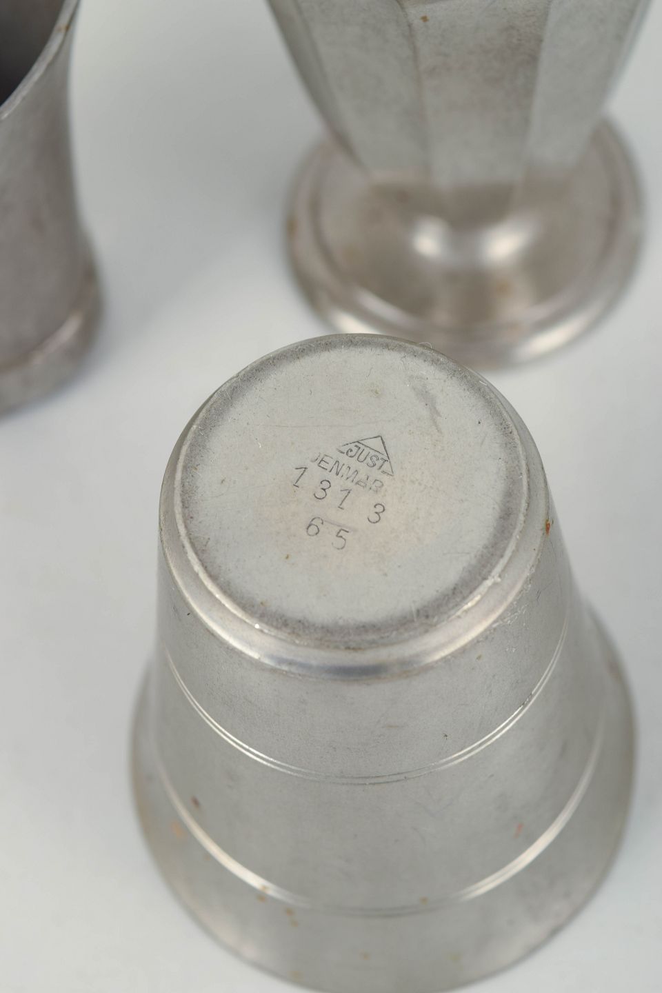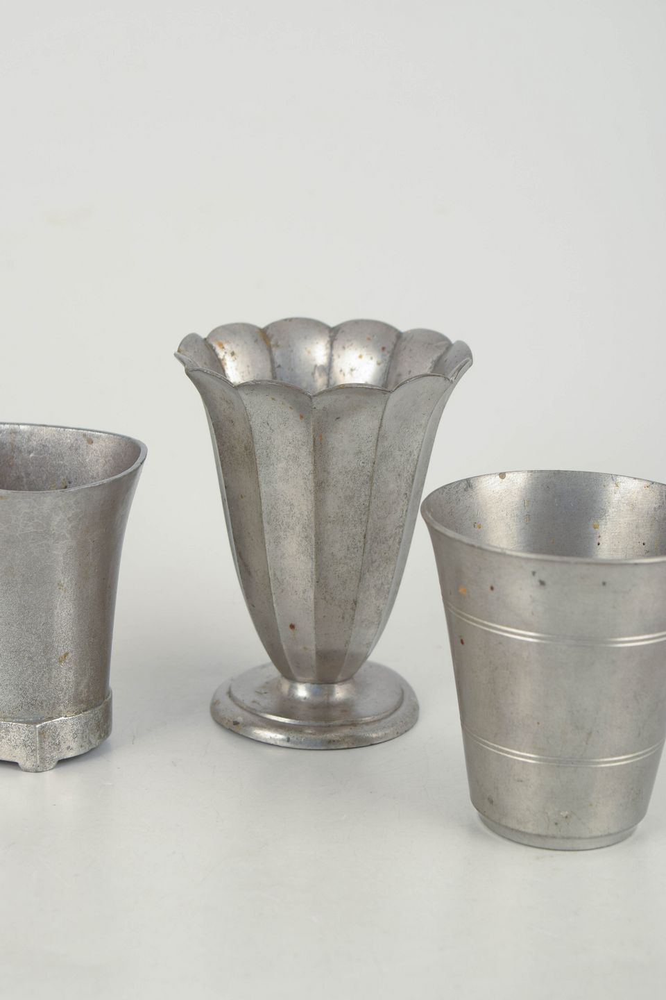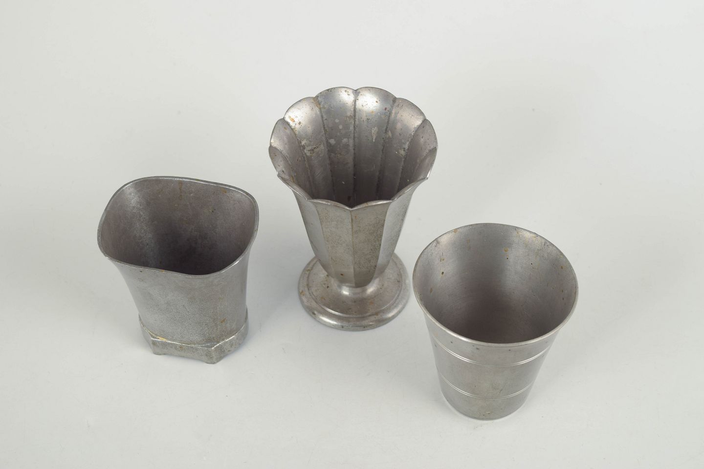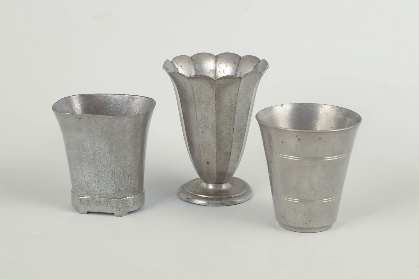 Tre små vaser i tin udført i et varieret og elegant art deco formsprog. Modeller 2549, 1313 og 1123.