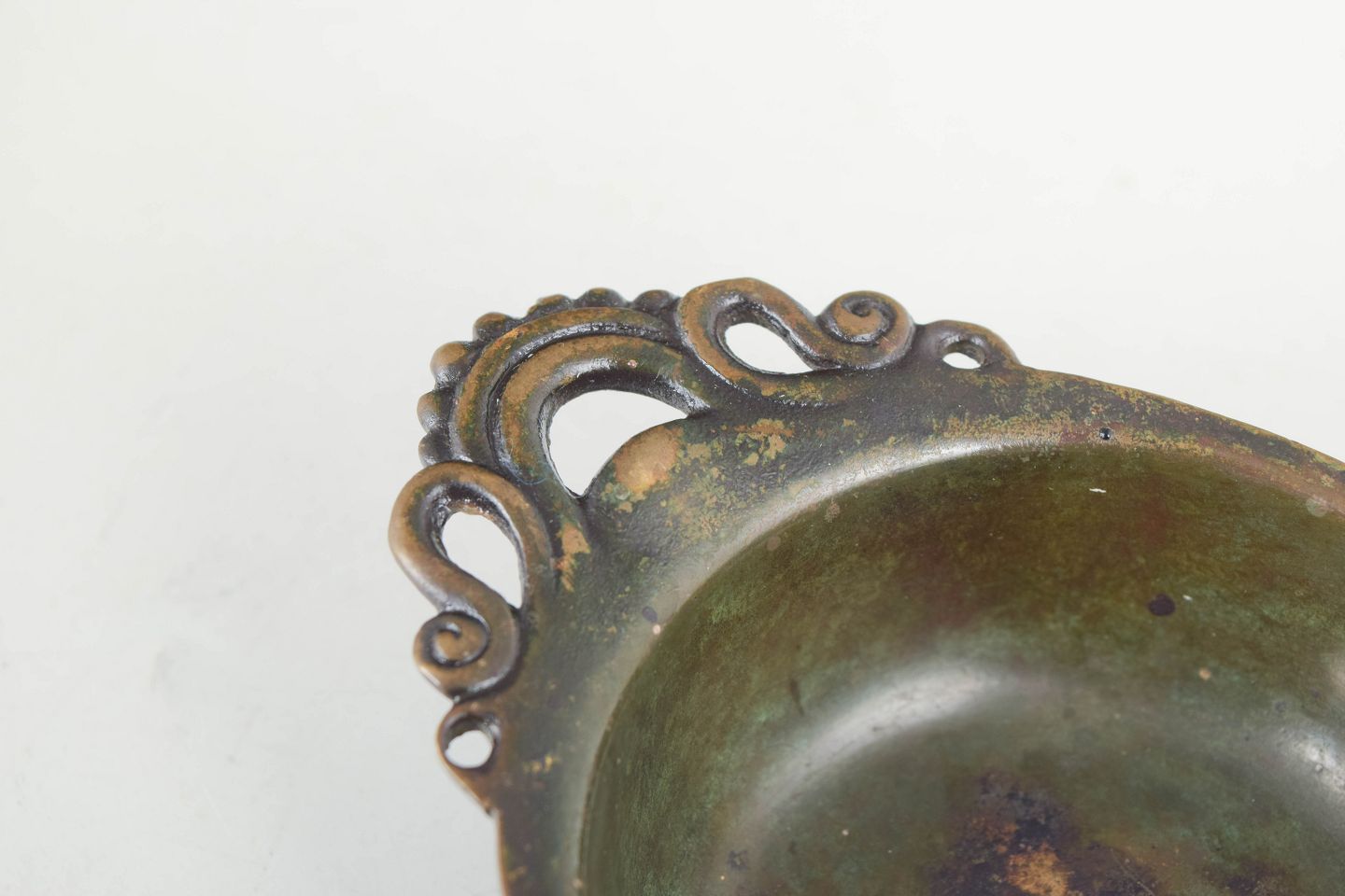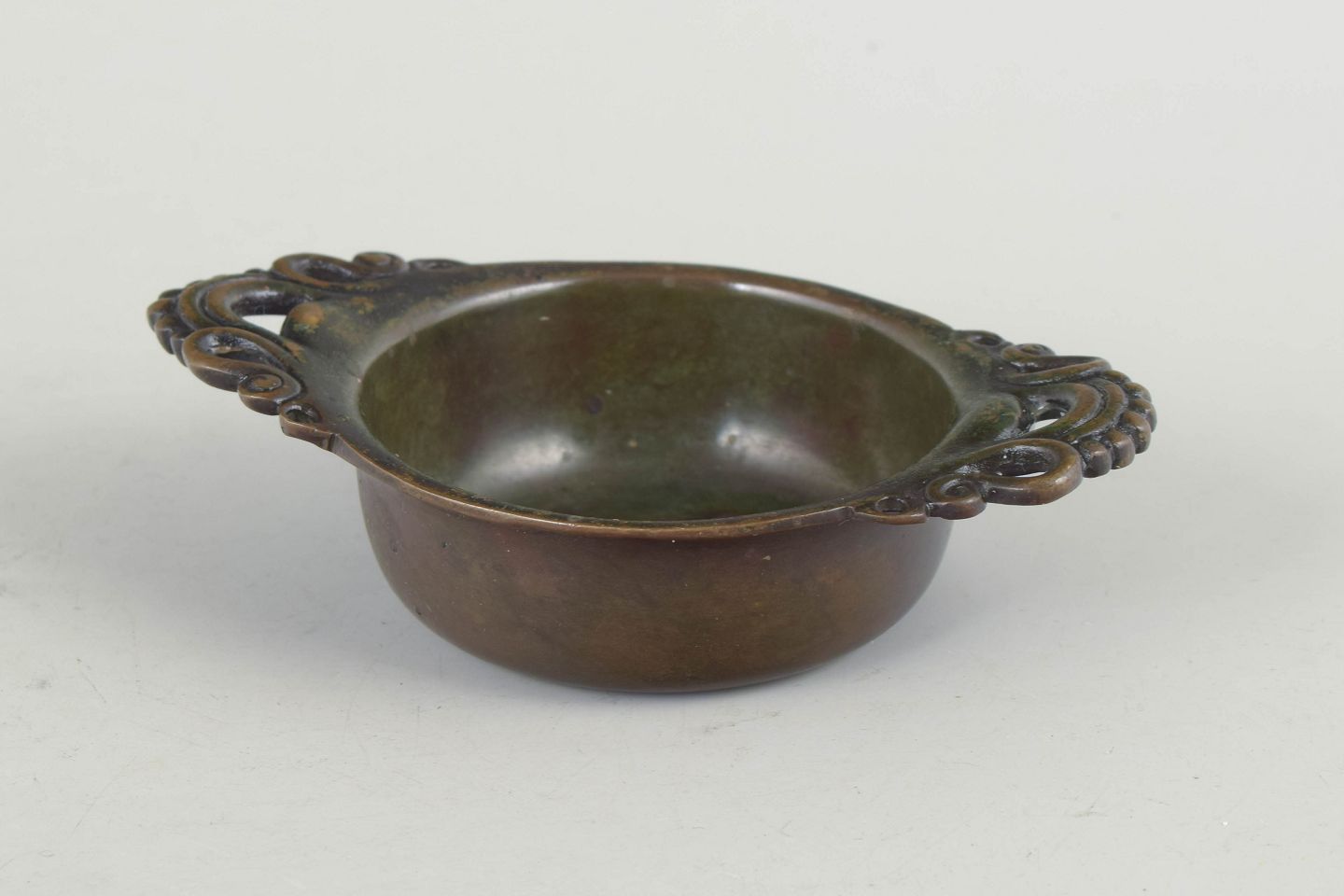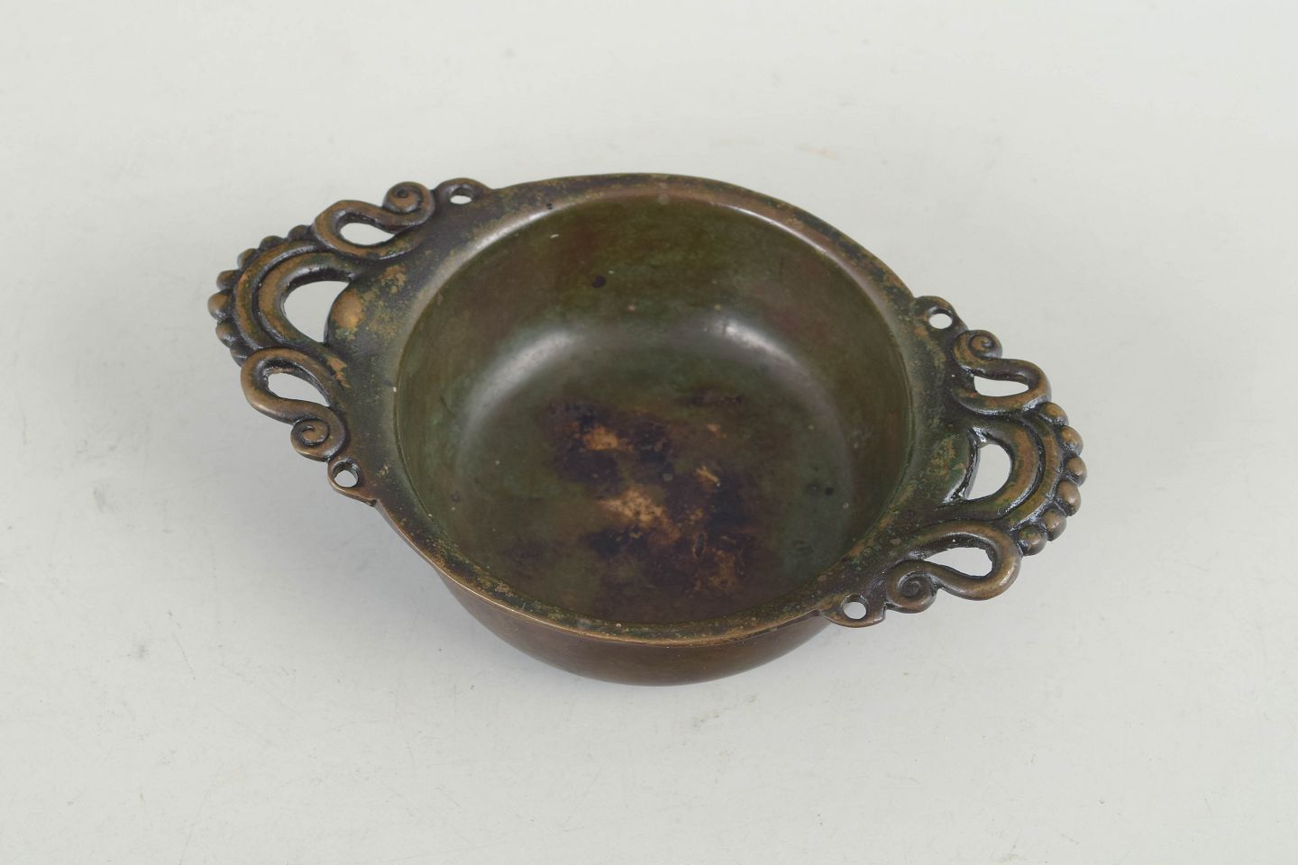 Lille skål i bronze med dekorative hanke og organiske detaljer i et karakteristisk art deco formsprog. Model B33.