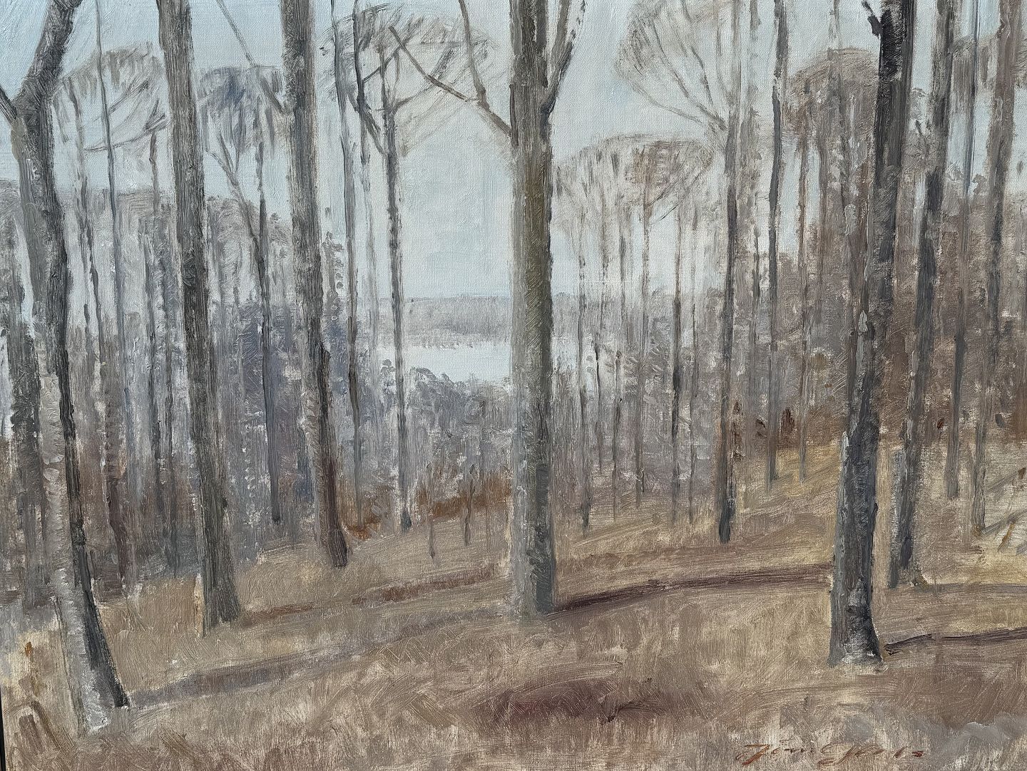 Jørn Glob (1913–1988), Öl auf Leinwand, Bäume an einem See, Maße mit Rahmen 98 x 79 cm *Guter Zustand*
