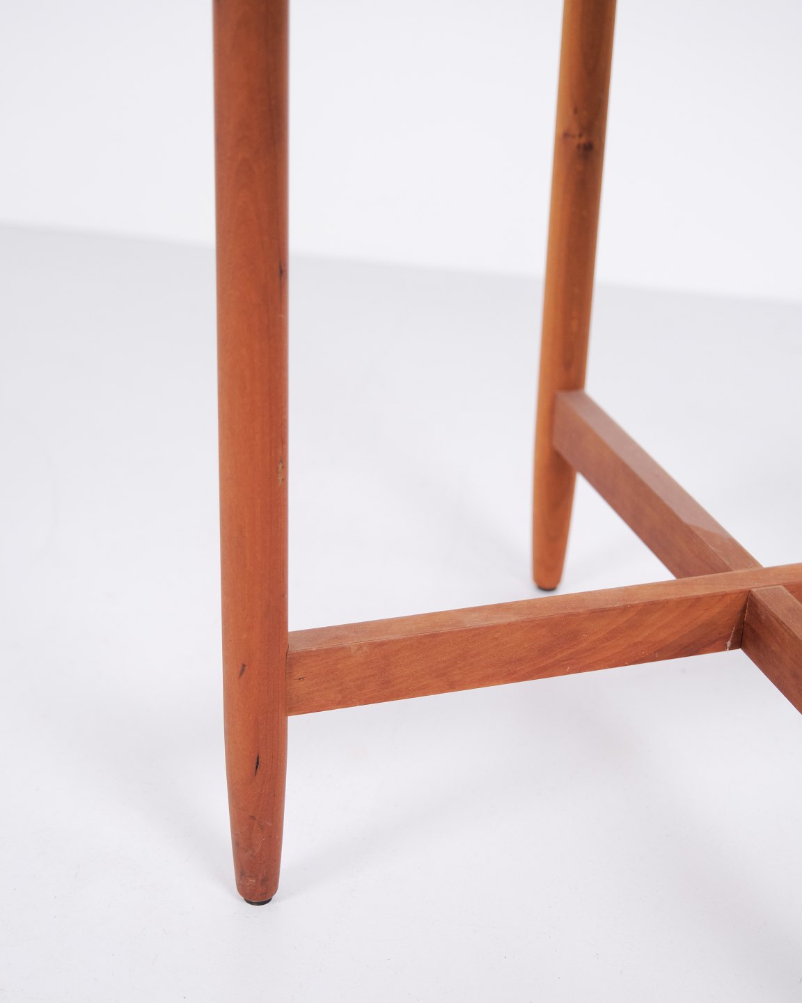 Schwedischer Beistelltisch aus den 1960er Jahren, gefertigt aus Kirschholz mit runder Glasplatte. Der Tisch verfügt über ein organisches Untergestell mit weich geschwungenen Beinen und hochwertiger Verarbeitung, inspiriert vom Designstil von Hans Johansson. Die Kombination aus massivem Holz und schwebender Glasplatte ist typisch für skandinavisches Design dieser Zeit. Geeignet als Lampentisch, Sofatisch oder Beistelltisch.