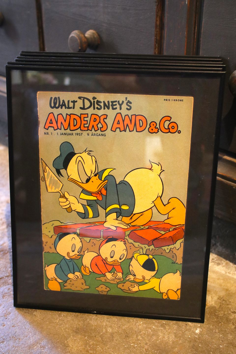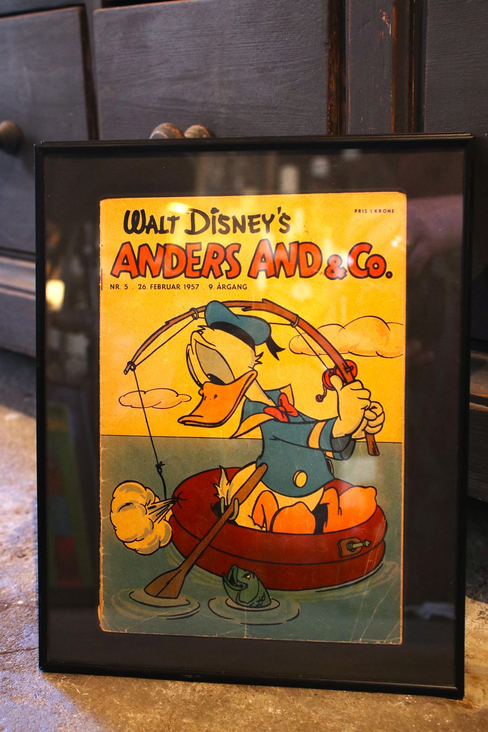 Dekorative , gamle Walt Disney Anders And blade fra årgang 1957 indrammet i sort ramme. 30x24cm...