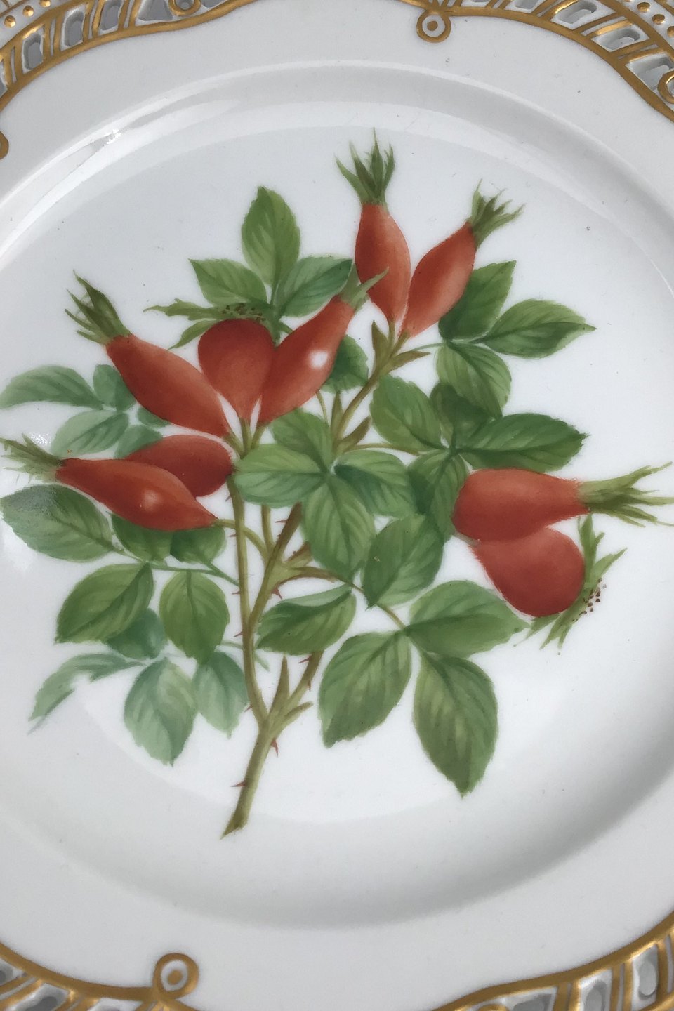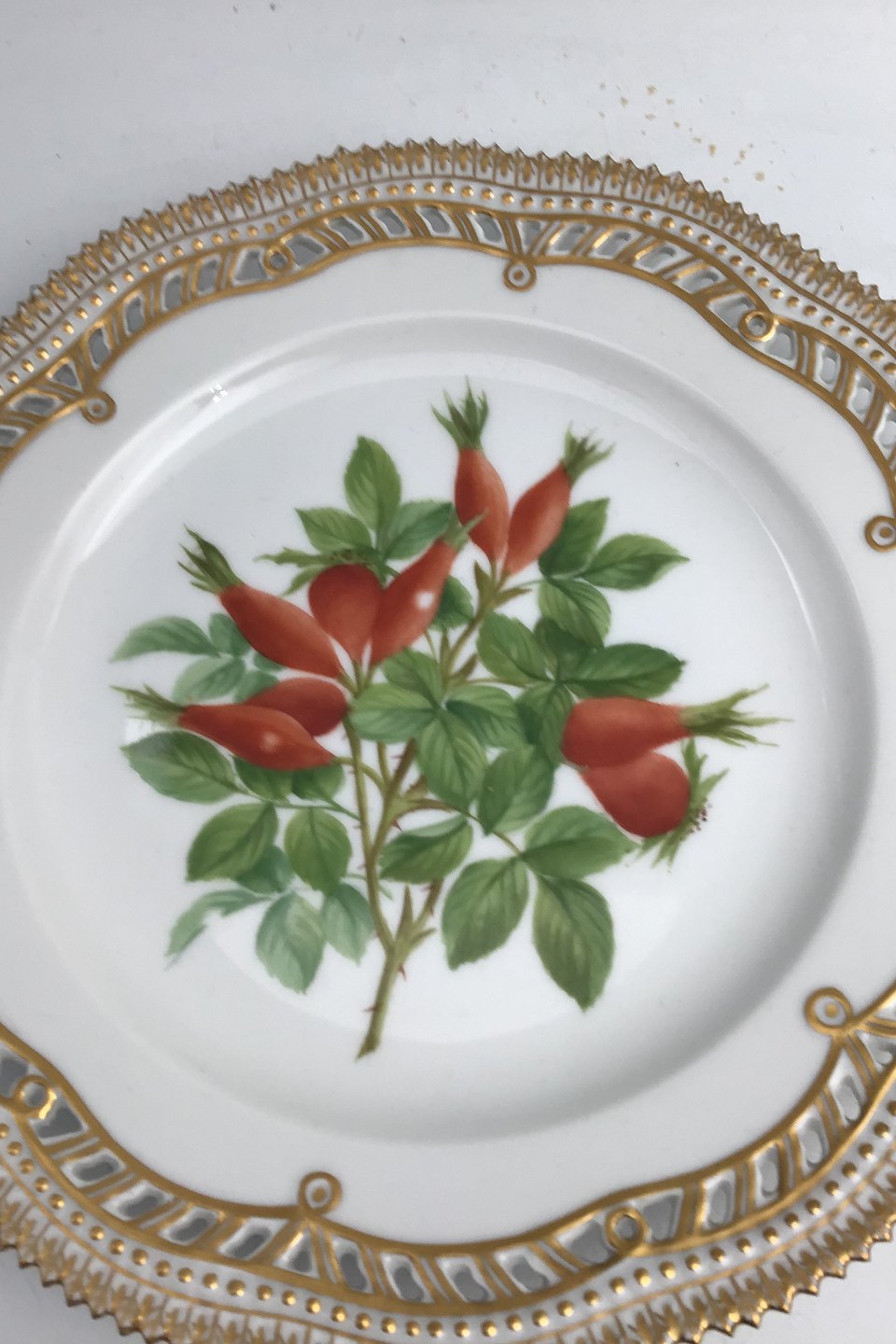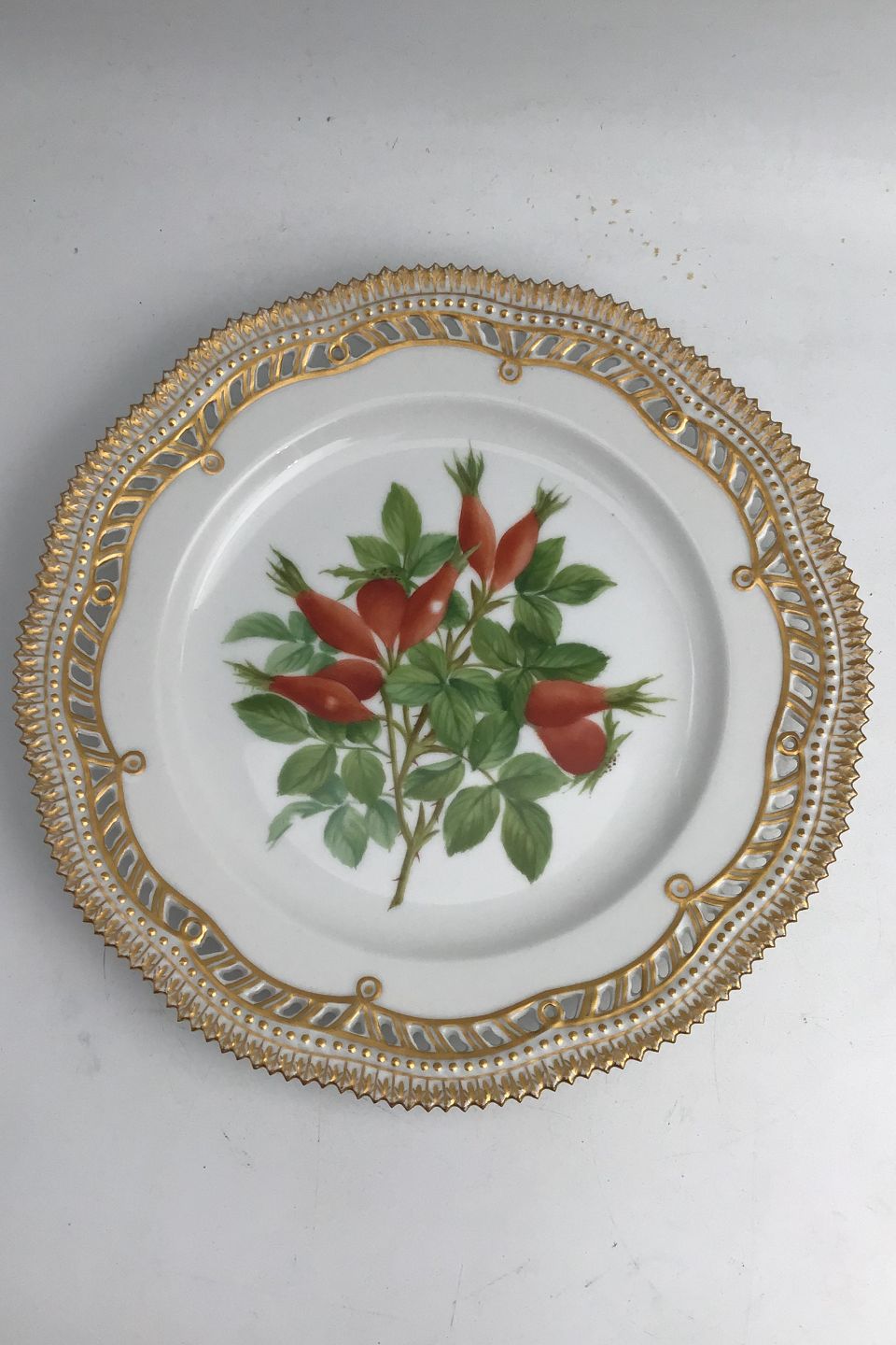 Royal Copenhagen Flora Danica Frugttallerken No. 429/3554. Måler 22,7 cm. (8.93 inch) 1. Sortering. Med gennembrudt kant.