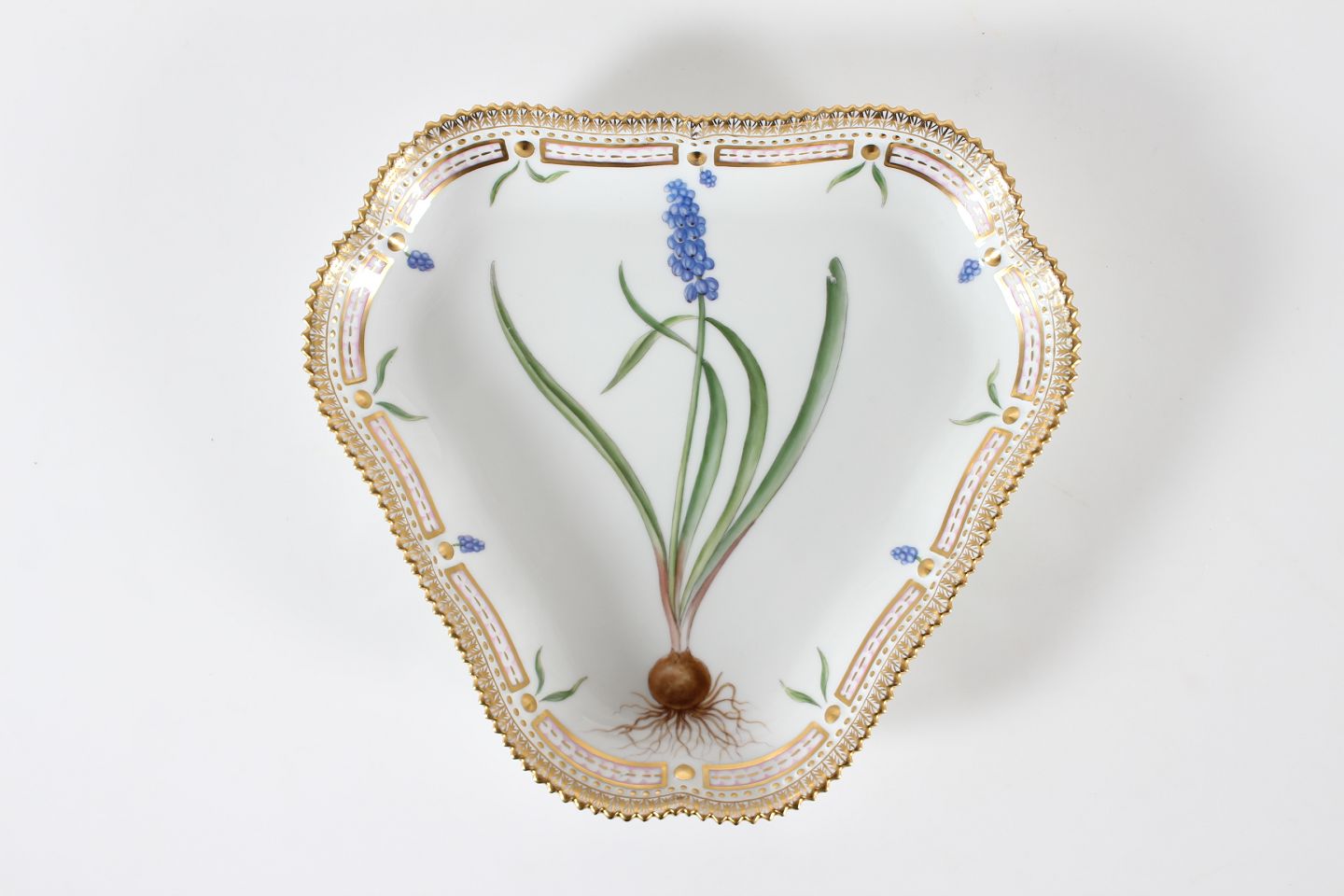 Lav trekantet skål 20/3508 dekoreret med blomster
