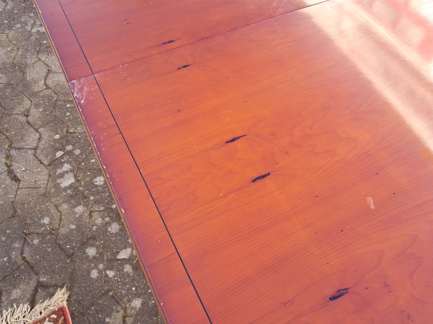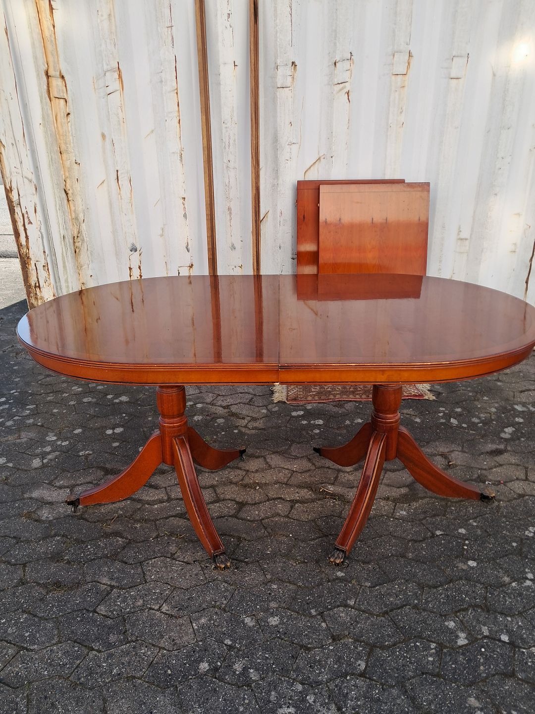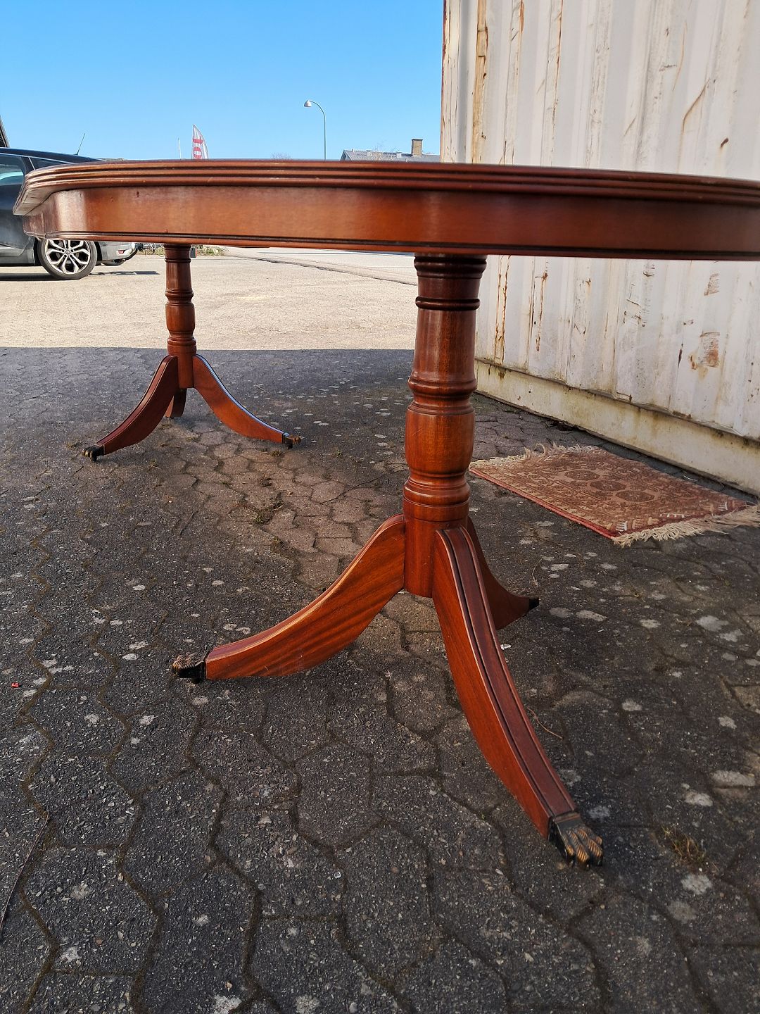 Text zugänglich auf Dänische: Two pillar table i fineret mahogni, fra 1990erne.