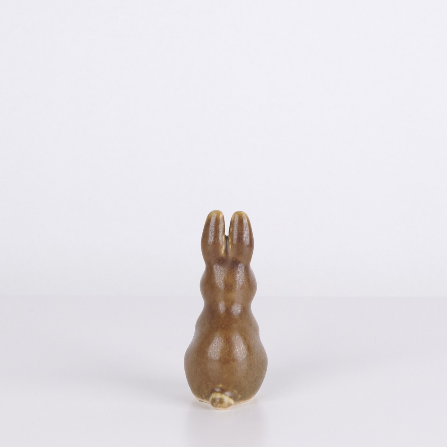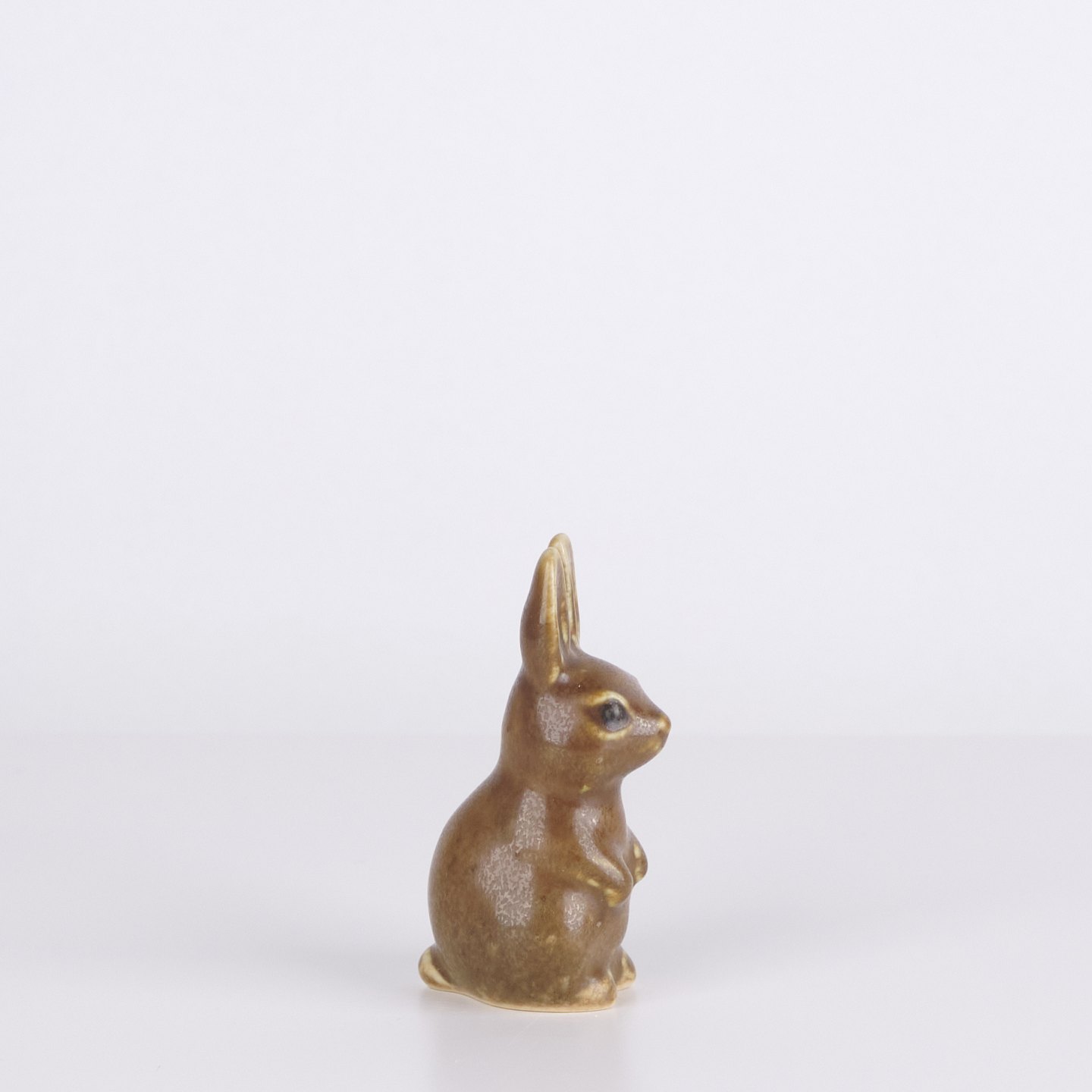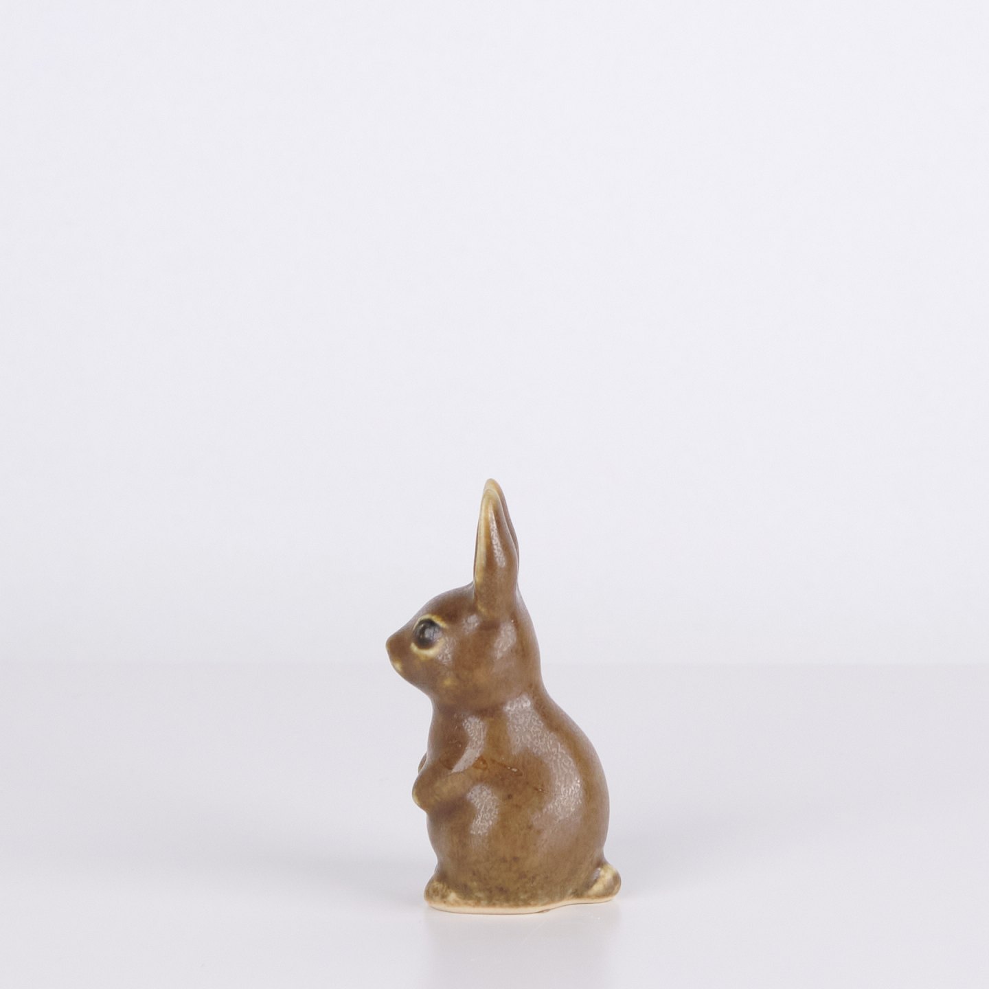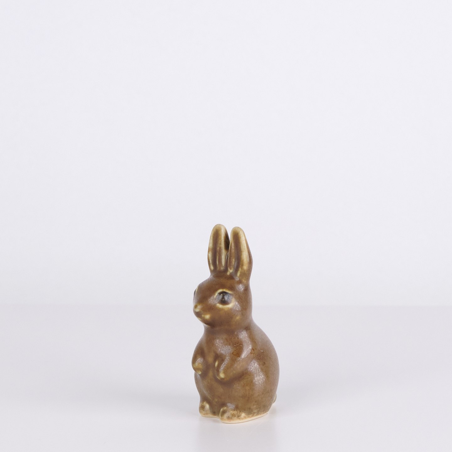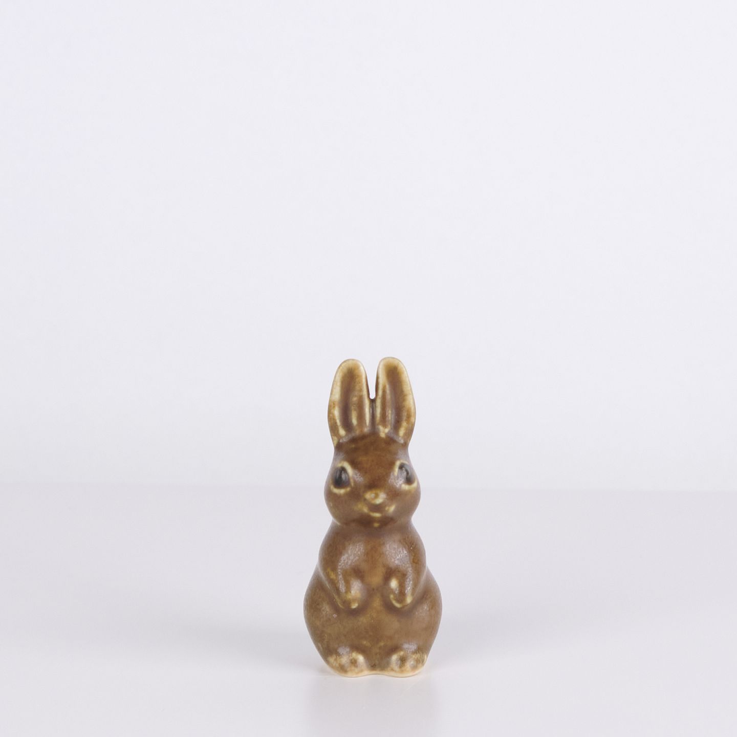 Kaninchenfigur aus glasiertem Steingut aus den 1960er Jahren. Die Figur hat eine klassische skandinavische Formensprache mit brauner Glasur und feinen handgemalten Details.