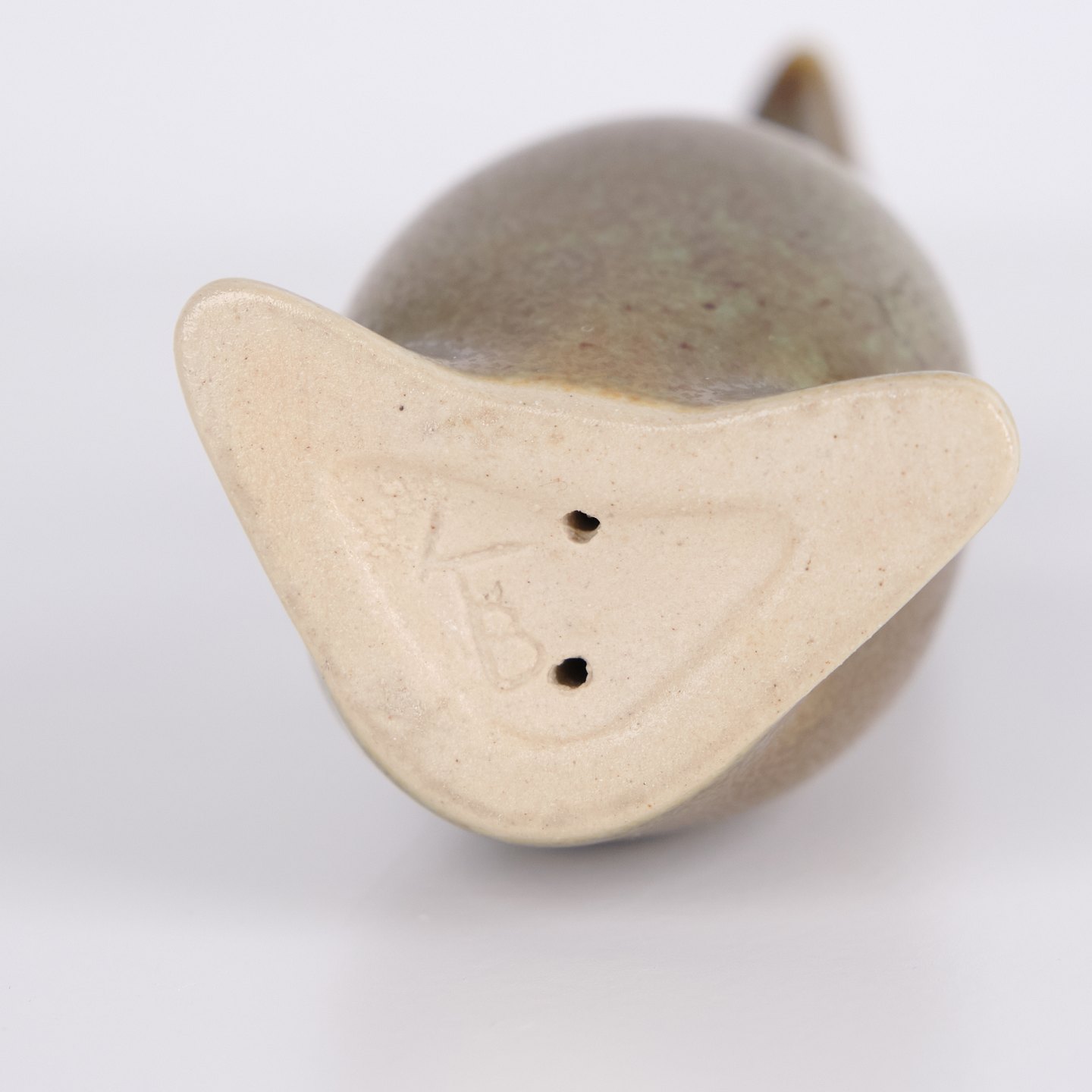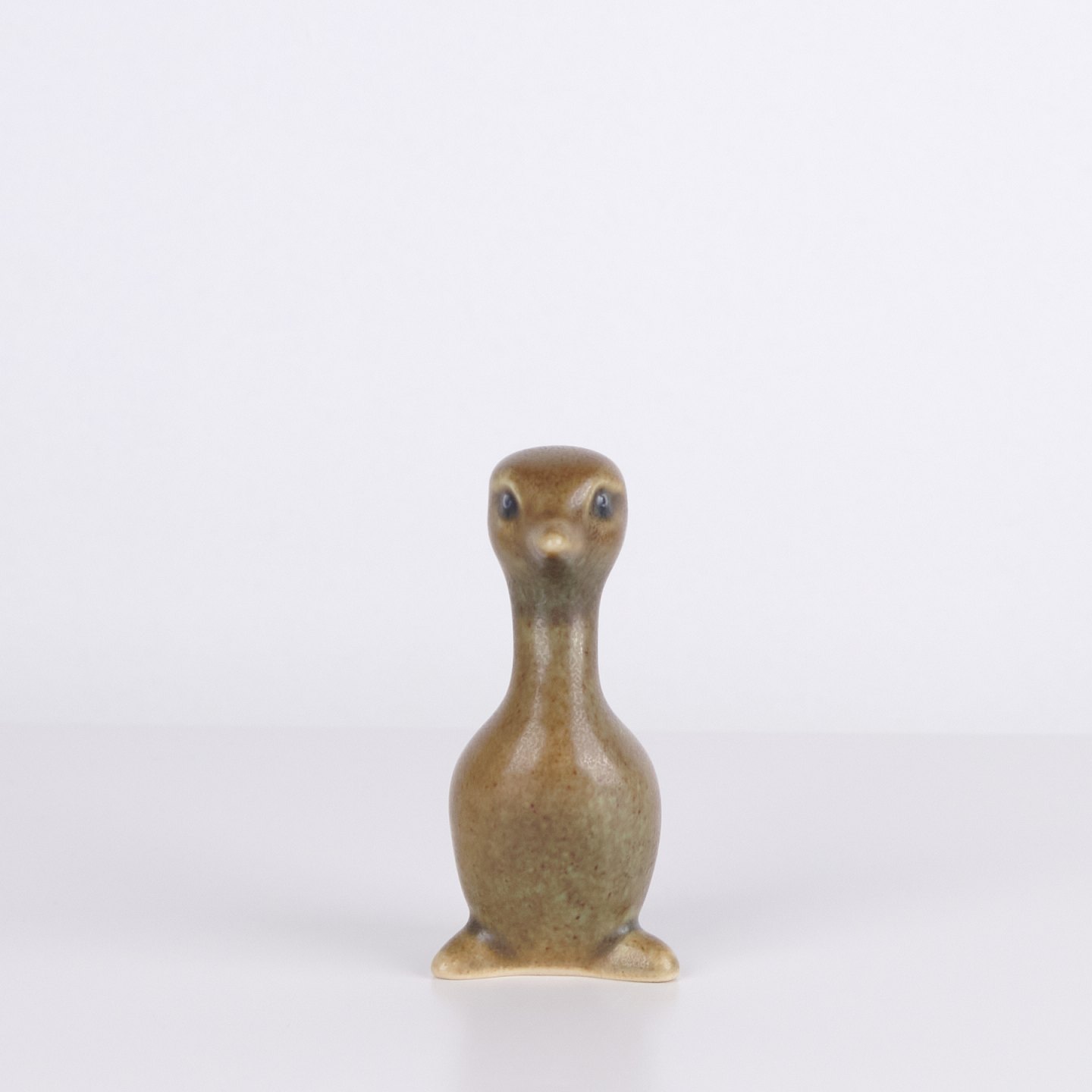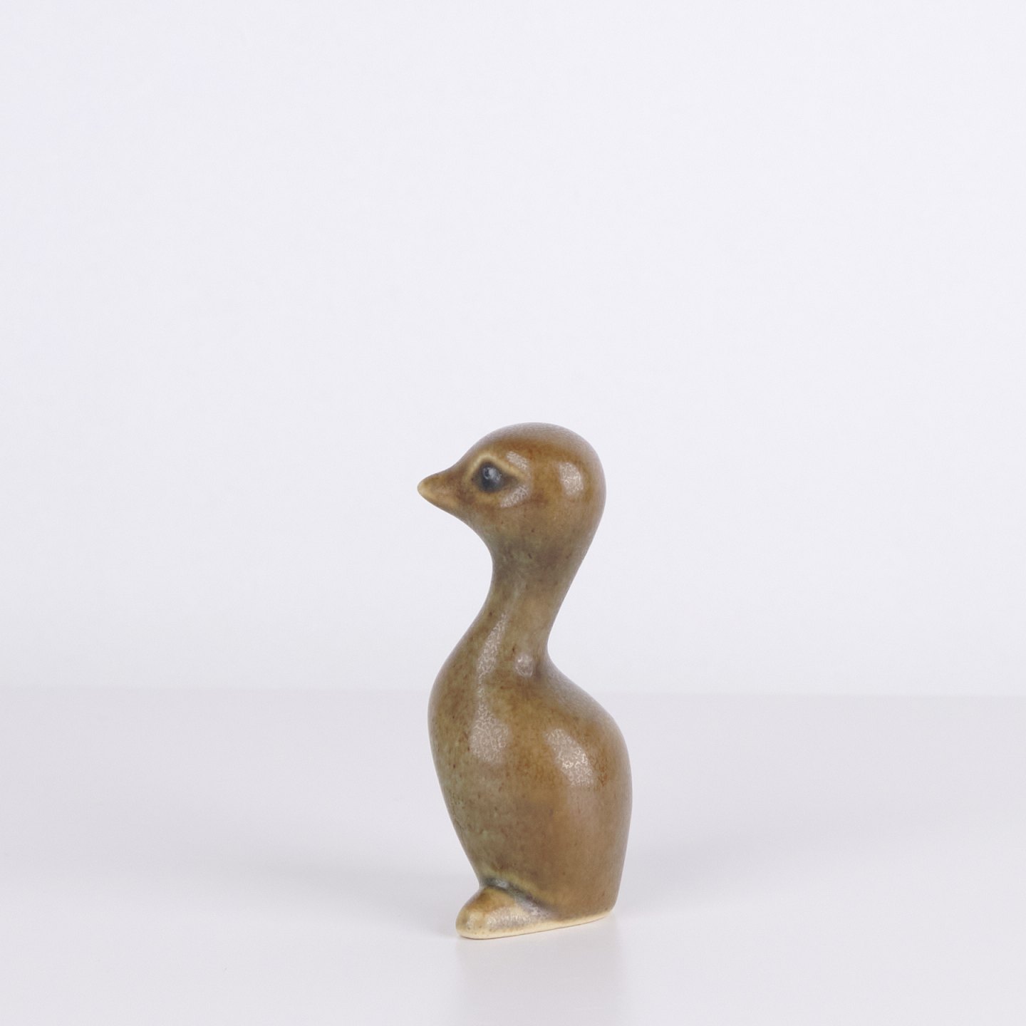 Vogelfigur von Knud Basse aus glasierter Keramik. Das Modell hat eine organische Formensprache mit langem Hals und stilisiertem Ausdruck, typisch für Knud Basses beliebte Tierfiguren. Dänische Kunstkeramik und Sammlerstück aus der Mid-Century-Periode. Knud Basse ist besonders bekannt für keramische Tierfiguren, vor allem Vogelmotive.