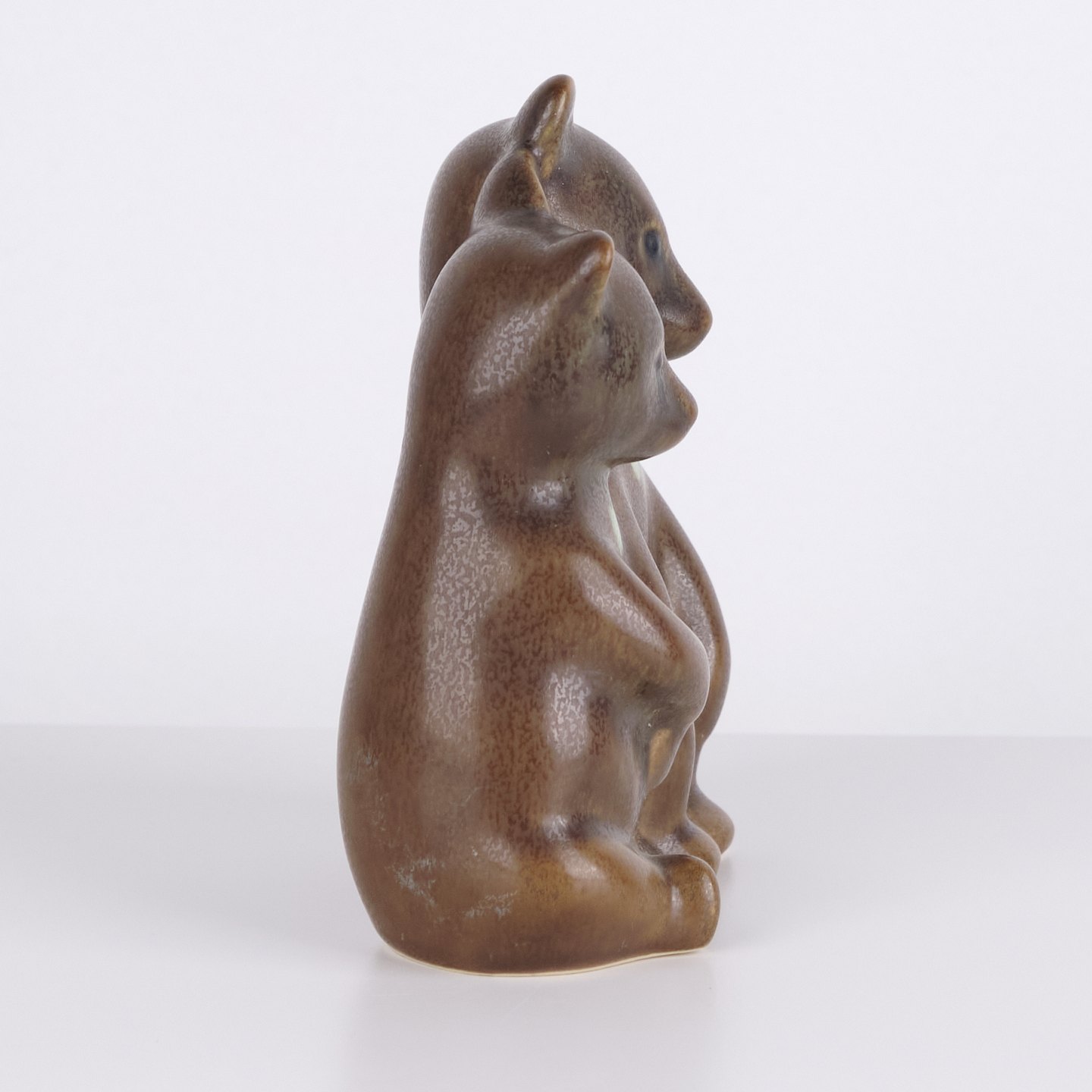 Knud Basse Paar Bärenfigur aus Braun Glasierter Keramik, Dänisches Design, 1960er Jahre