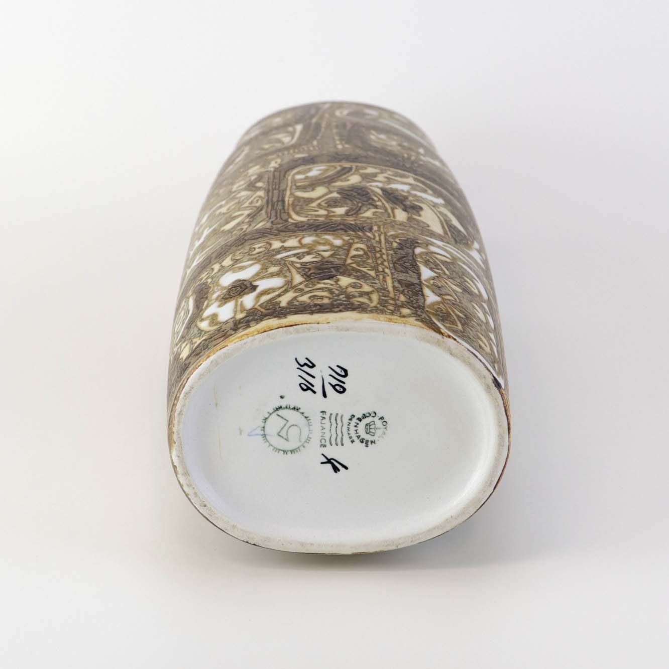 Høj oval vase i fajance fra serien Baca med mønster i brune nuancer. Nr. 719/3116
