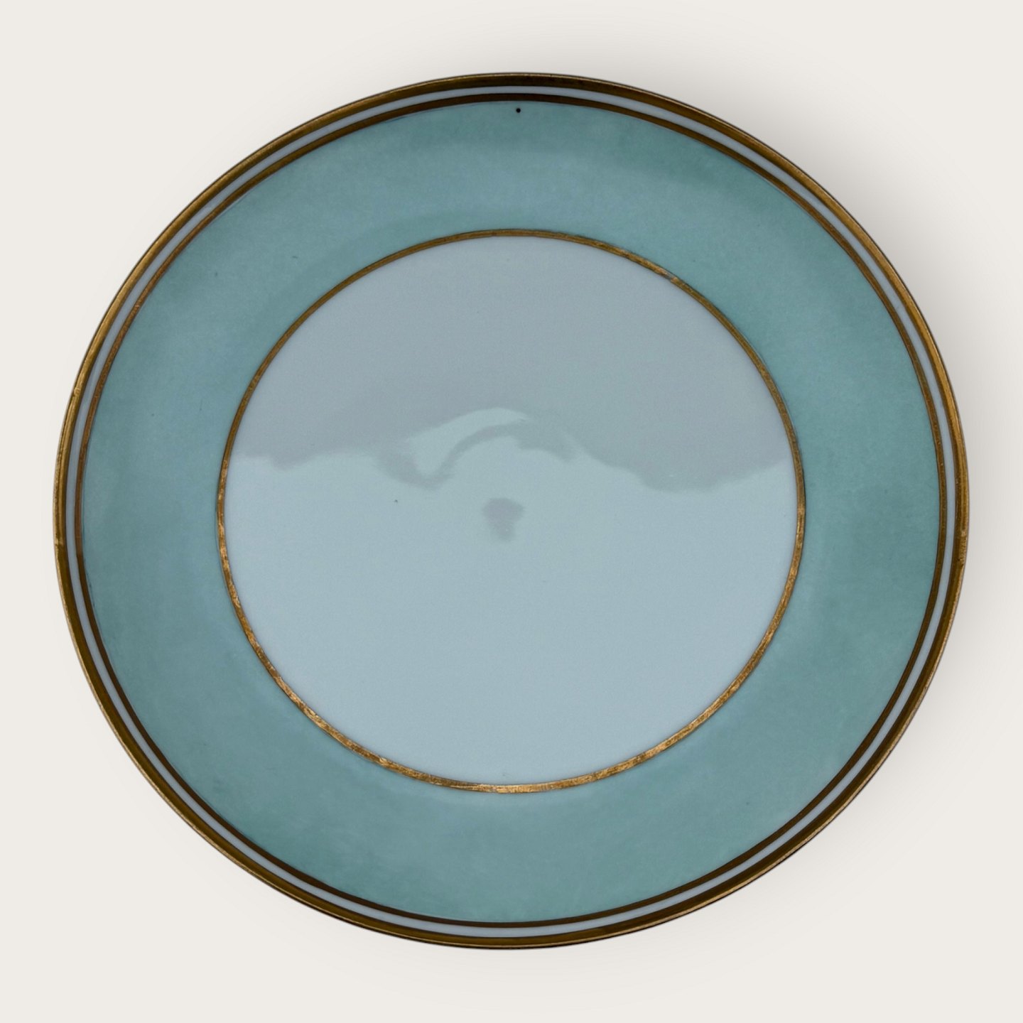 | Bing & Grondahl, Form 643 mit breitem türkisfarbenem Dekor und Goldrand, Speiseteller, Nr. 26, Durchmesser 20,5 cm, 2. Wahl, *guter Zustand*
