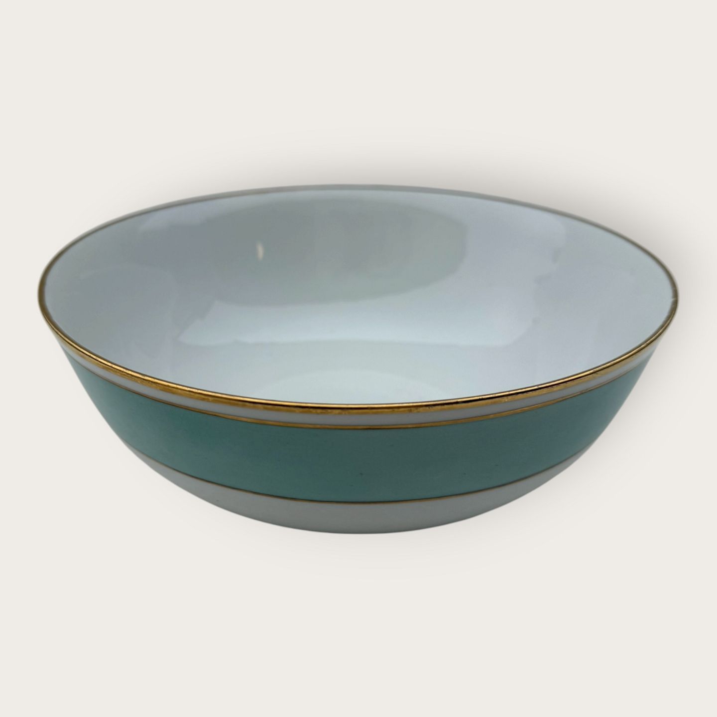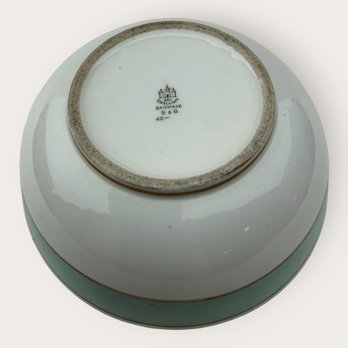 | Bing & Grondahl, Form 643 mit breitem türkisfarbenem Dekor und Goldrand, Servierschüssel, Nr. 43, 8 cm hoch, 21 cm breit, 2. Wahl, *Guter Zustand*
