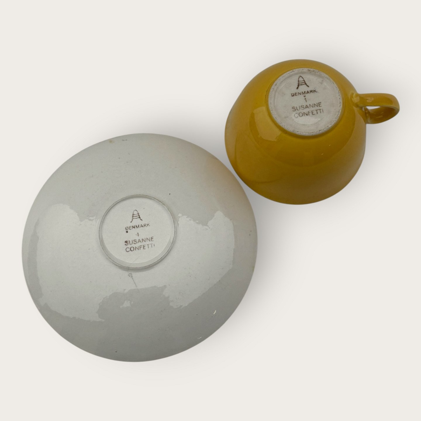 | Royal Copenhagen, Aluminia, Confetti / Susanne, Teetasse, Gelb, 9,5 cm Durchmesser, 6 cm hoch *Die Tasse weist innen zahlreiche Risse auf.*