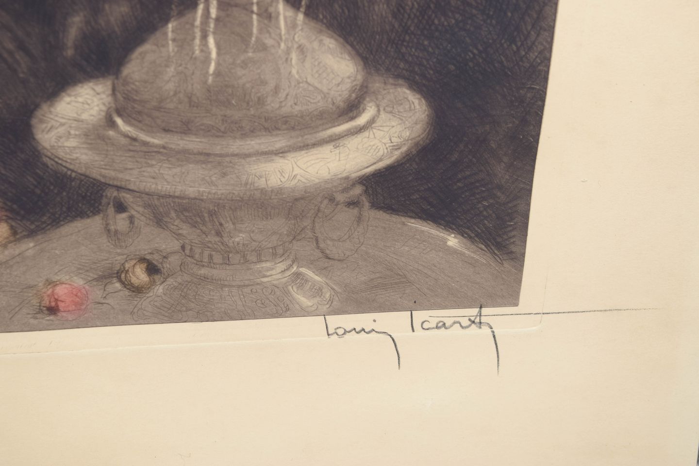 Text zugänglich auf Dänische: Louis Icart, radering, fransk billedkunstner. Titel : "smoke"