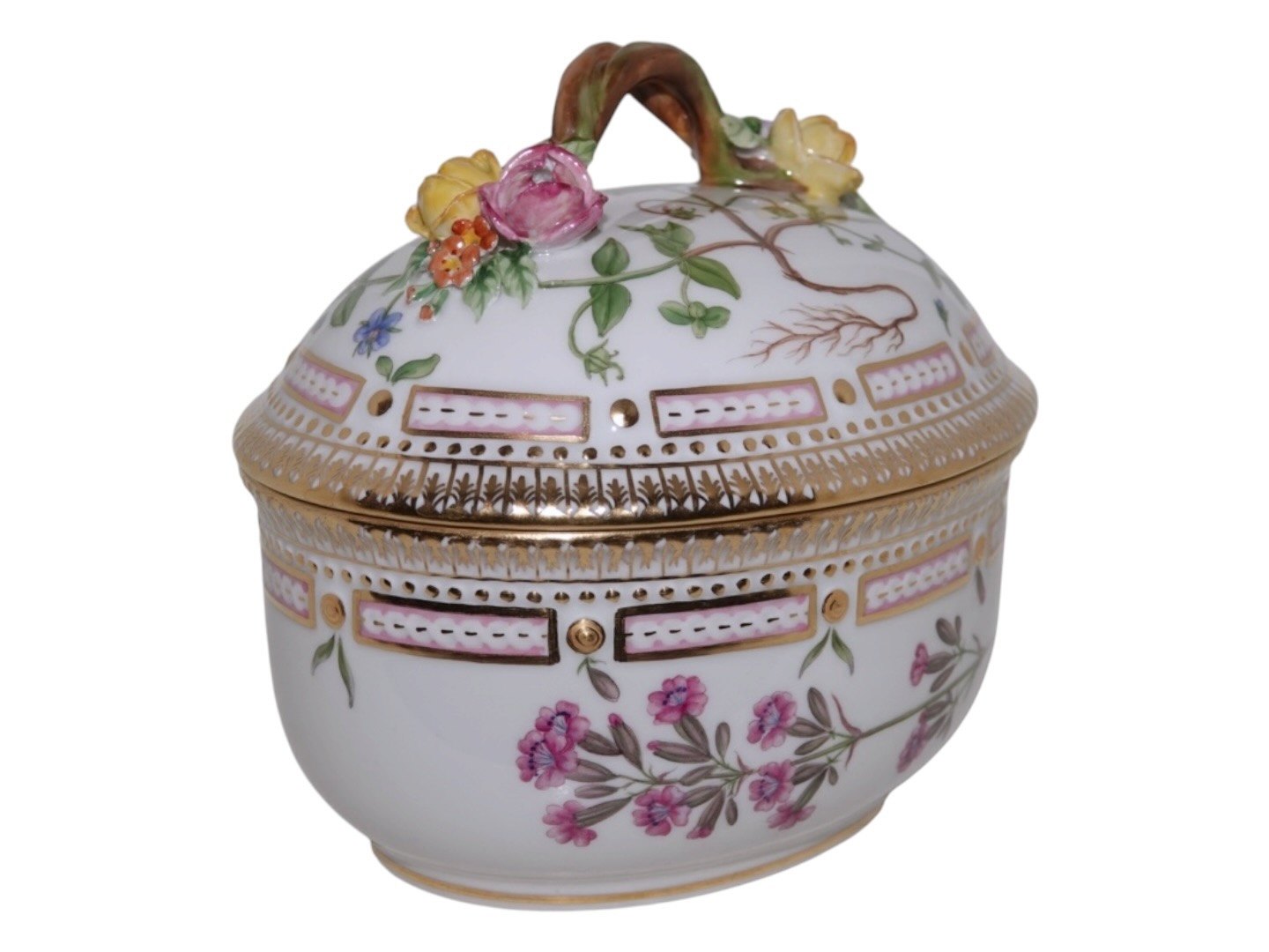 Royal Copenhagen Flora Danica, større skål med låg kaldet en sukkerdåse.