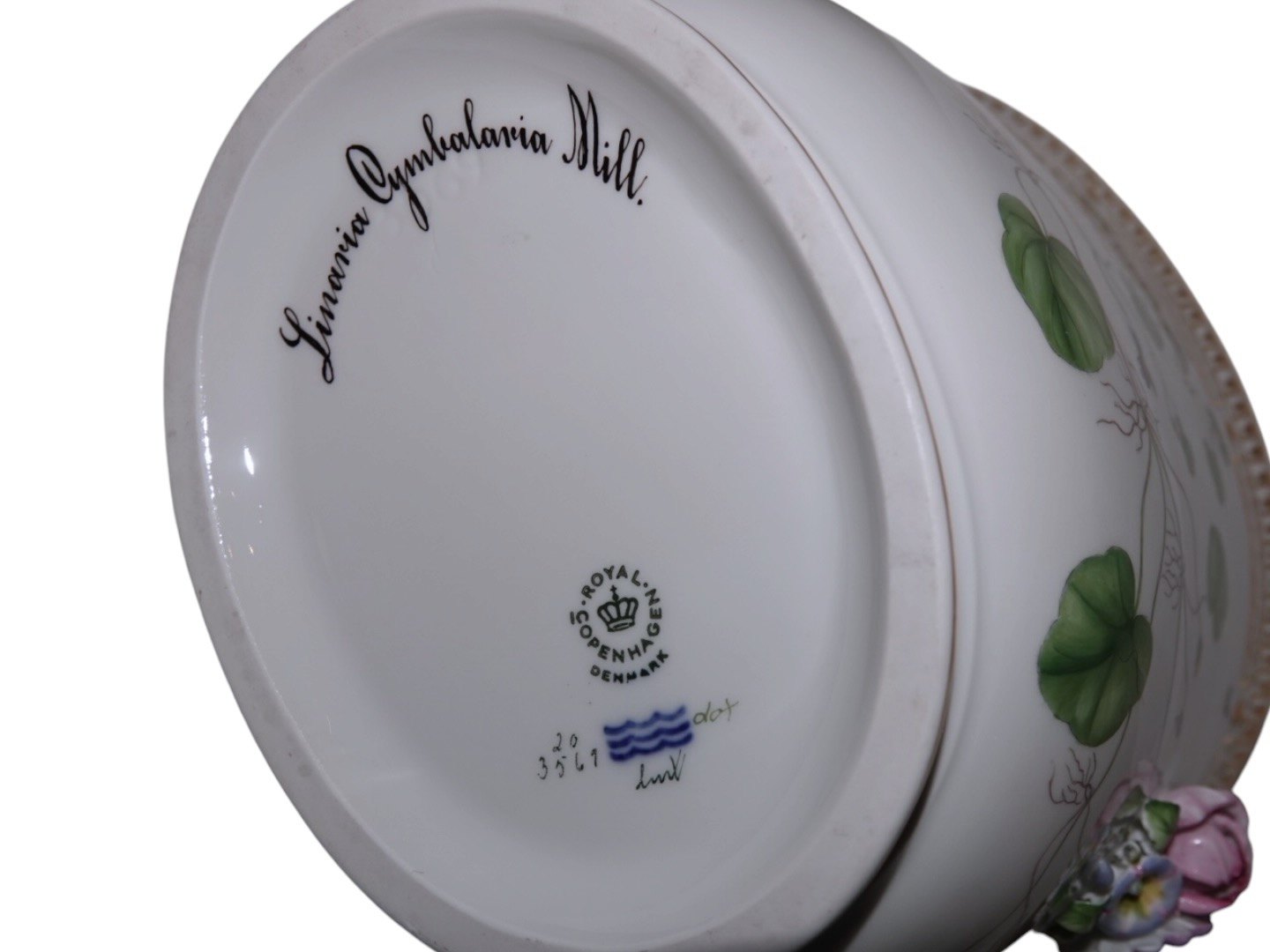 Dekoreret med blomst "Linaria Cymbalaria Mill.", som er "Almindelig Torskemund" på dansk.