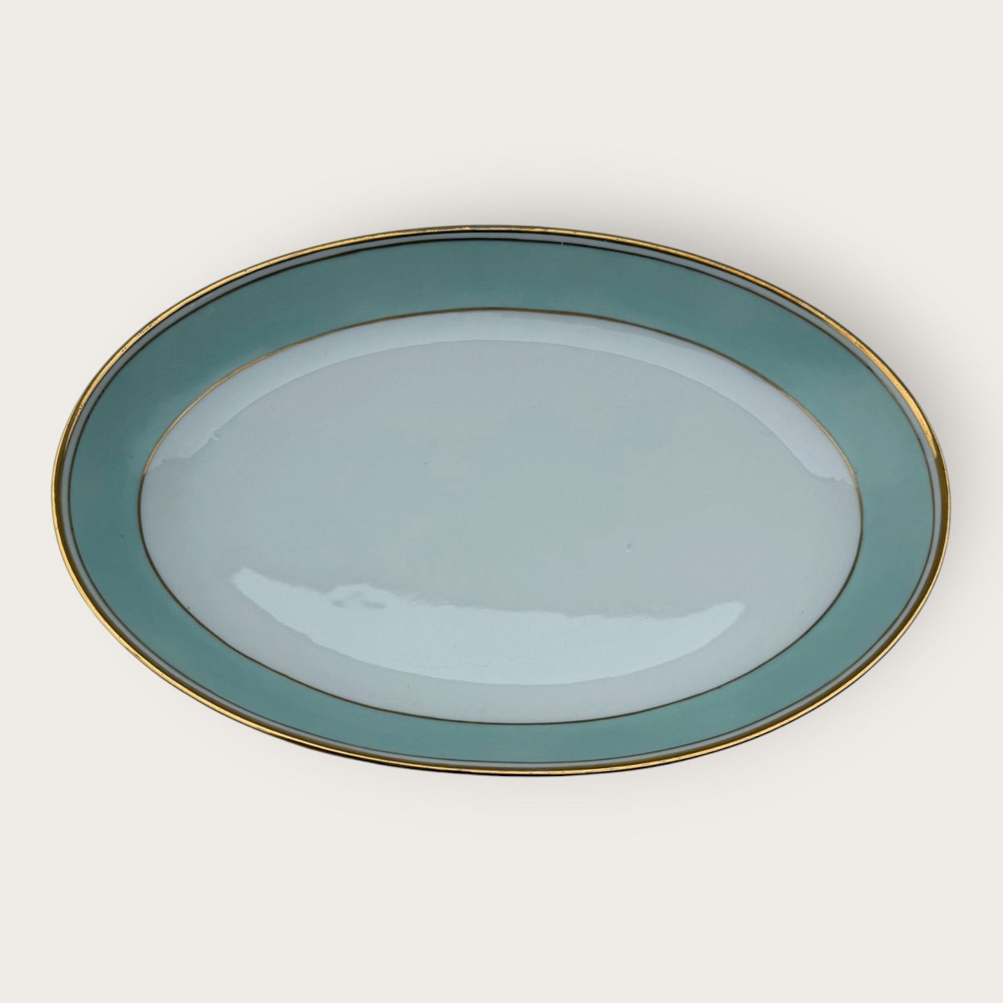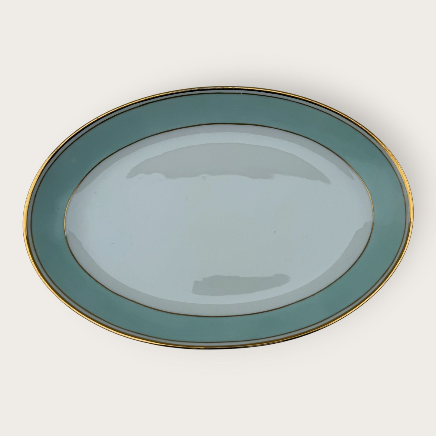 | Bing & Grondahl, Form 643 mit breitem türkisfarbenem Dekor und Goldrand, Servierplatte, 33,5 x 23 cm, 2. Wahl, *guter Zustand*
