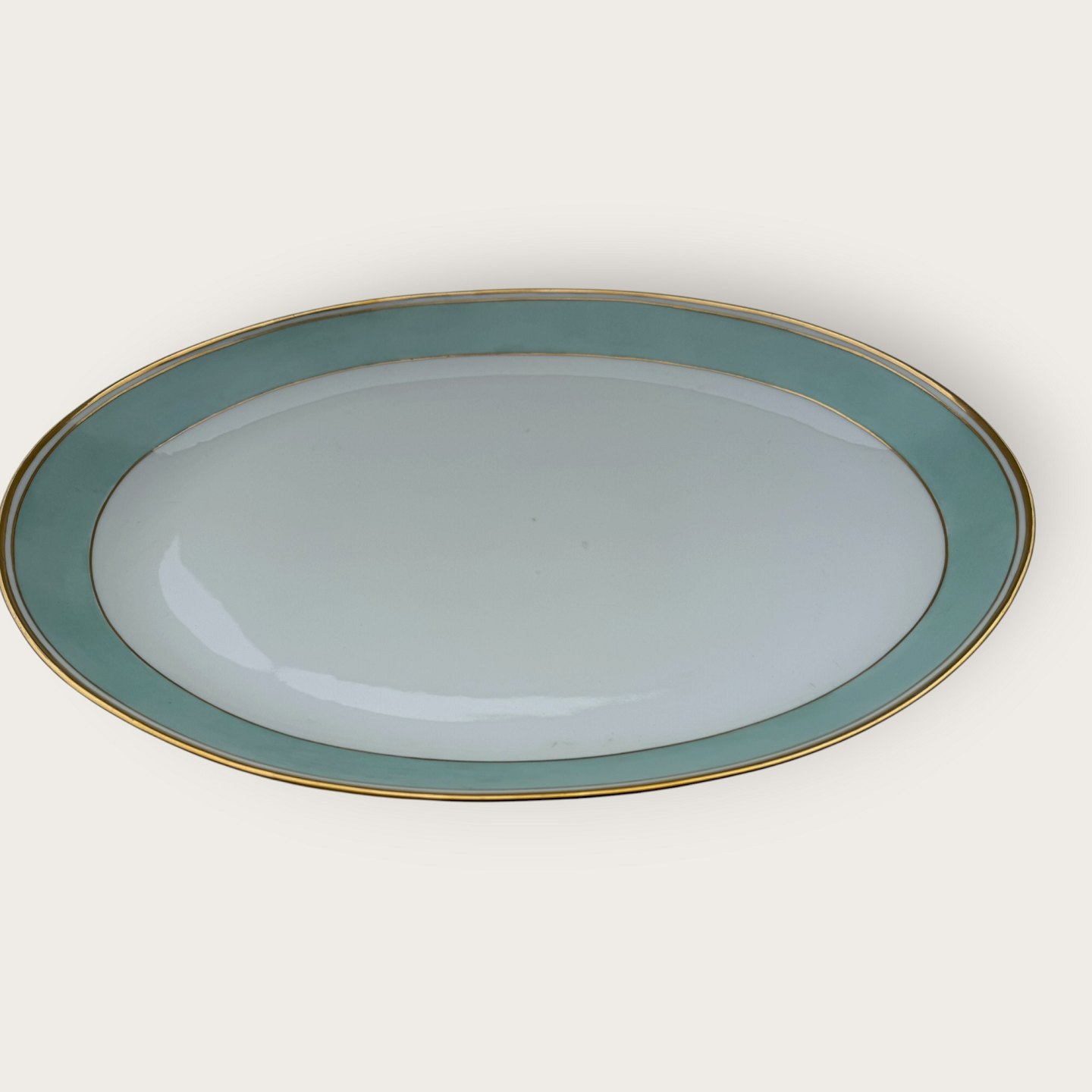 | Bing & Grondahl, Form 643 mit breitem türkisfarbenem Dekor und Goldrand, große Servierplatte, 46 x 33 cm, 2. Wahl, *guter Zustand*