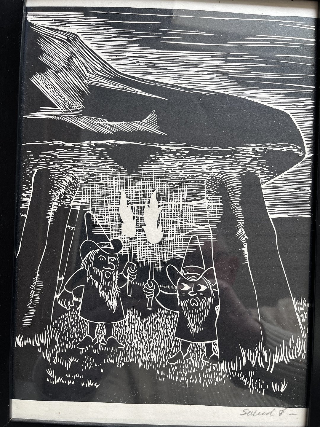 Linoleumssnit på papir.