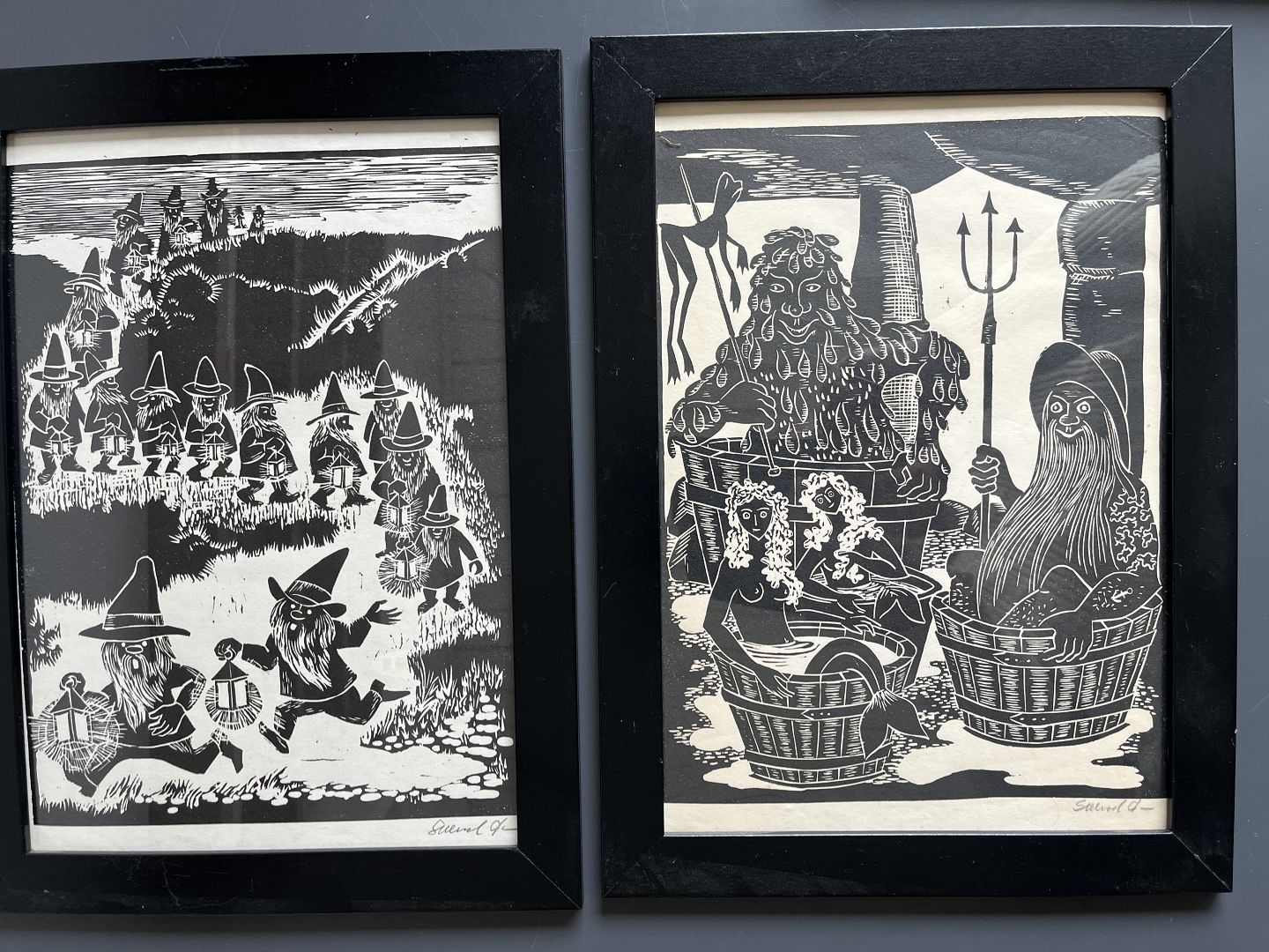 2 kompositioner med Trolde, nisser, træer, dyr mm.