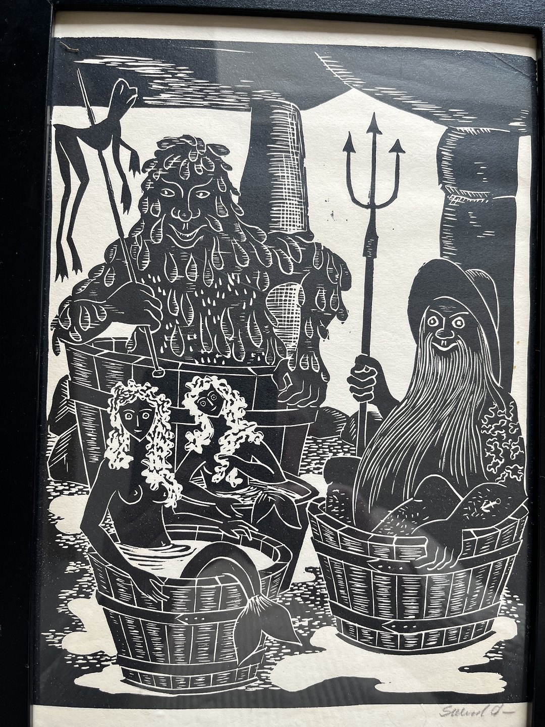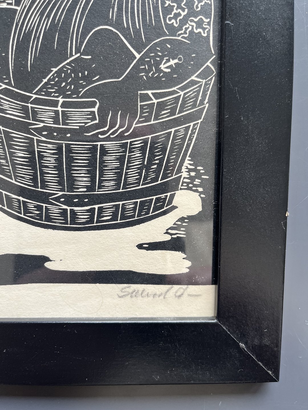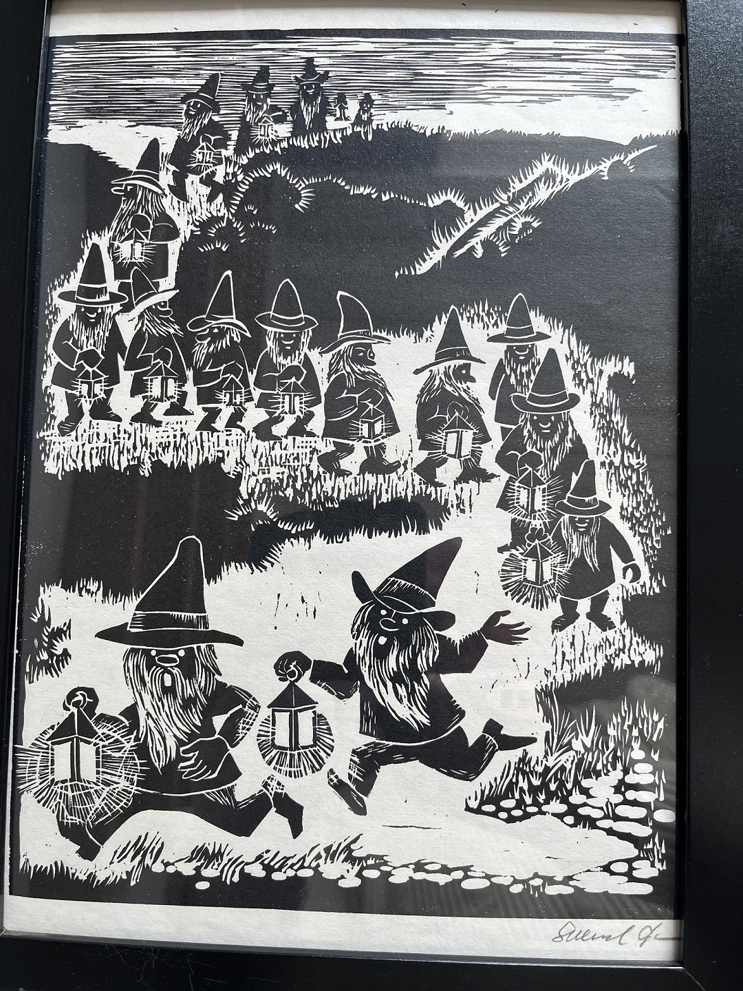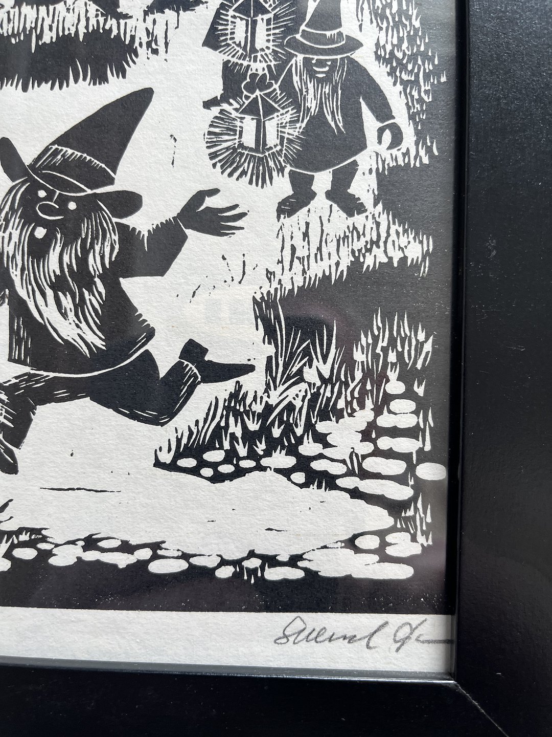 Linoleumssnit på papir.