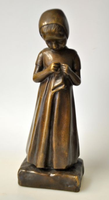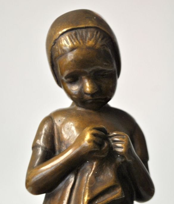 Karsten, Michaela (1886 - 1943) Dänemark: Ein kleines Mädchen. Bronze. Unsigniert. Höhe: 28 cm.