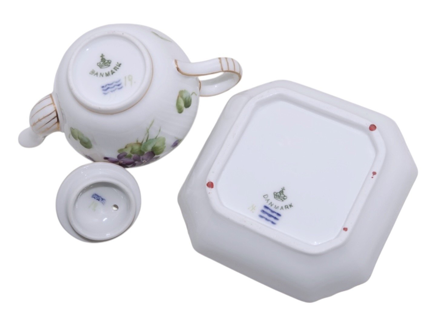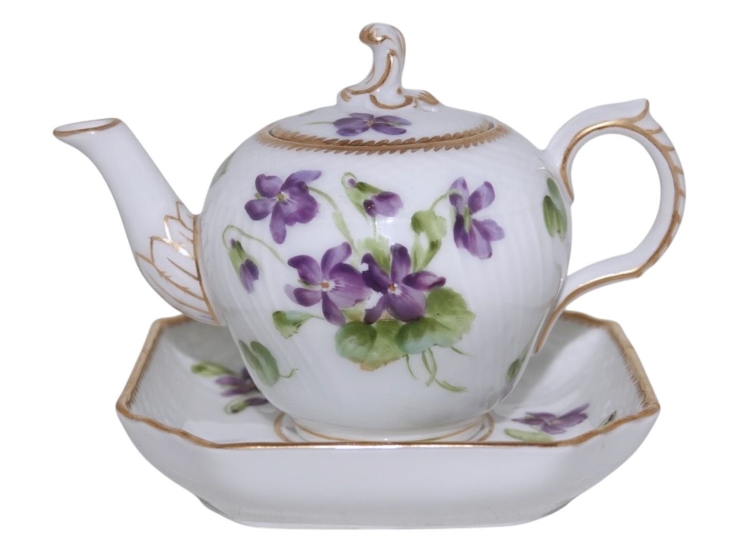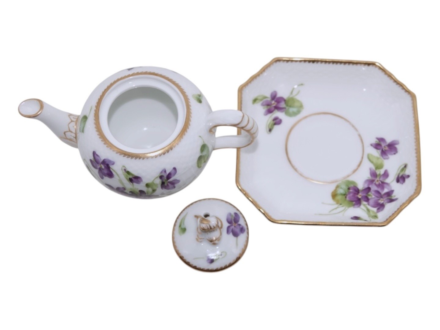 Royal Copenhagen Blå Violer med guldkant, mini mini tekande i dukkestel størrelse.