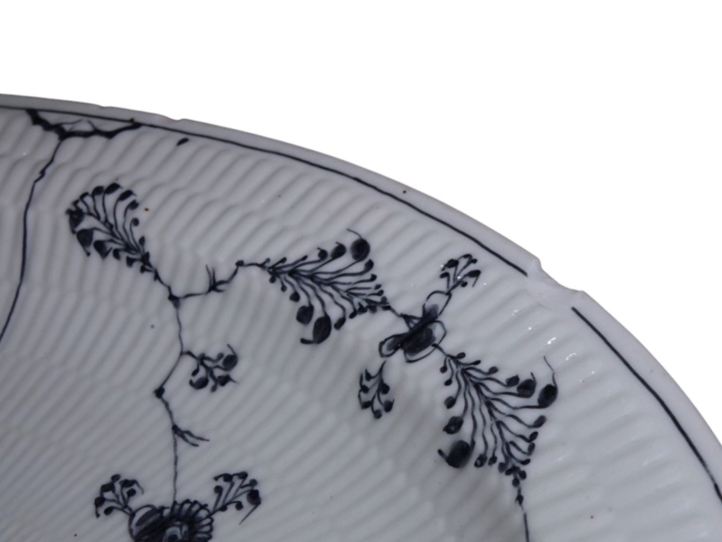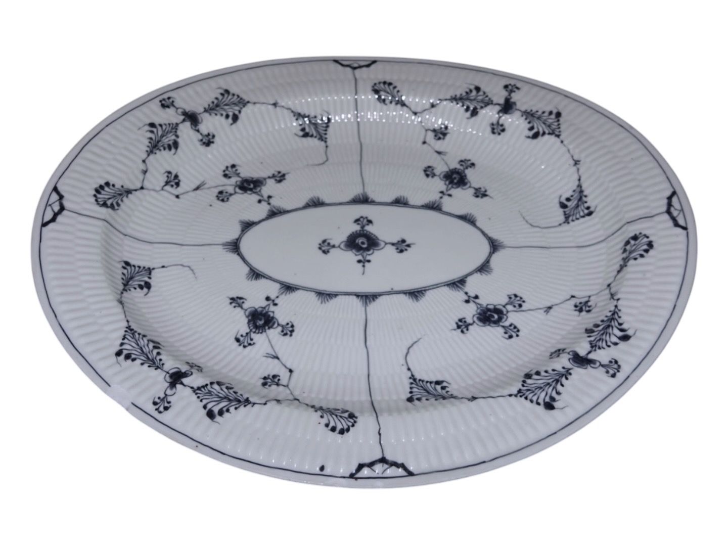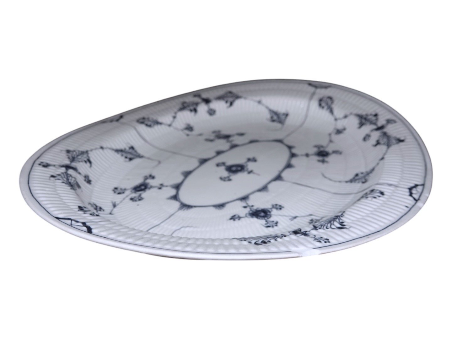 Royal Copenhagen Musselmalet Riflet, stegefad i gråt porcelæn.