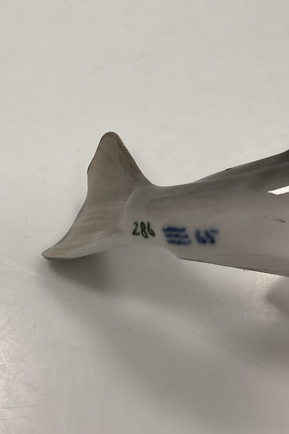 Royal Copenhagen Art Nouveau Figur i form af Torsk med åben mund No 286. Måler 17cm og er i god stand. Udover den har en ned slebet fine.