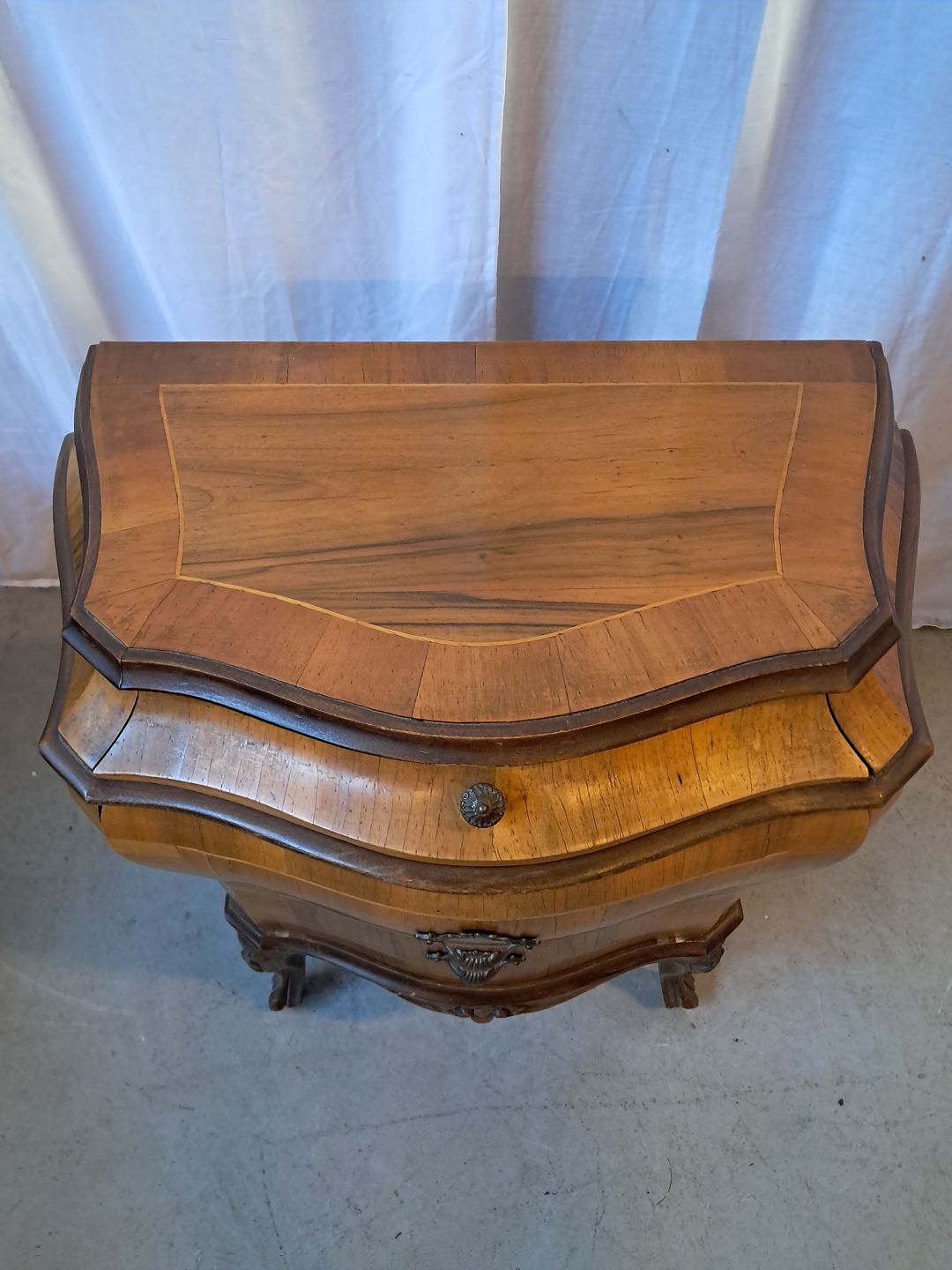 Rokoko kommode i fineret nødetræ, fra 1980erne.