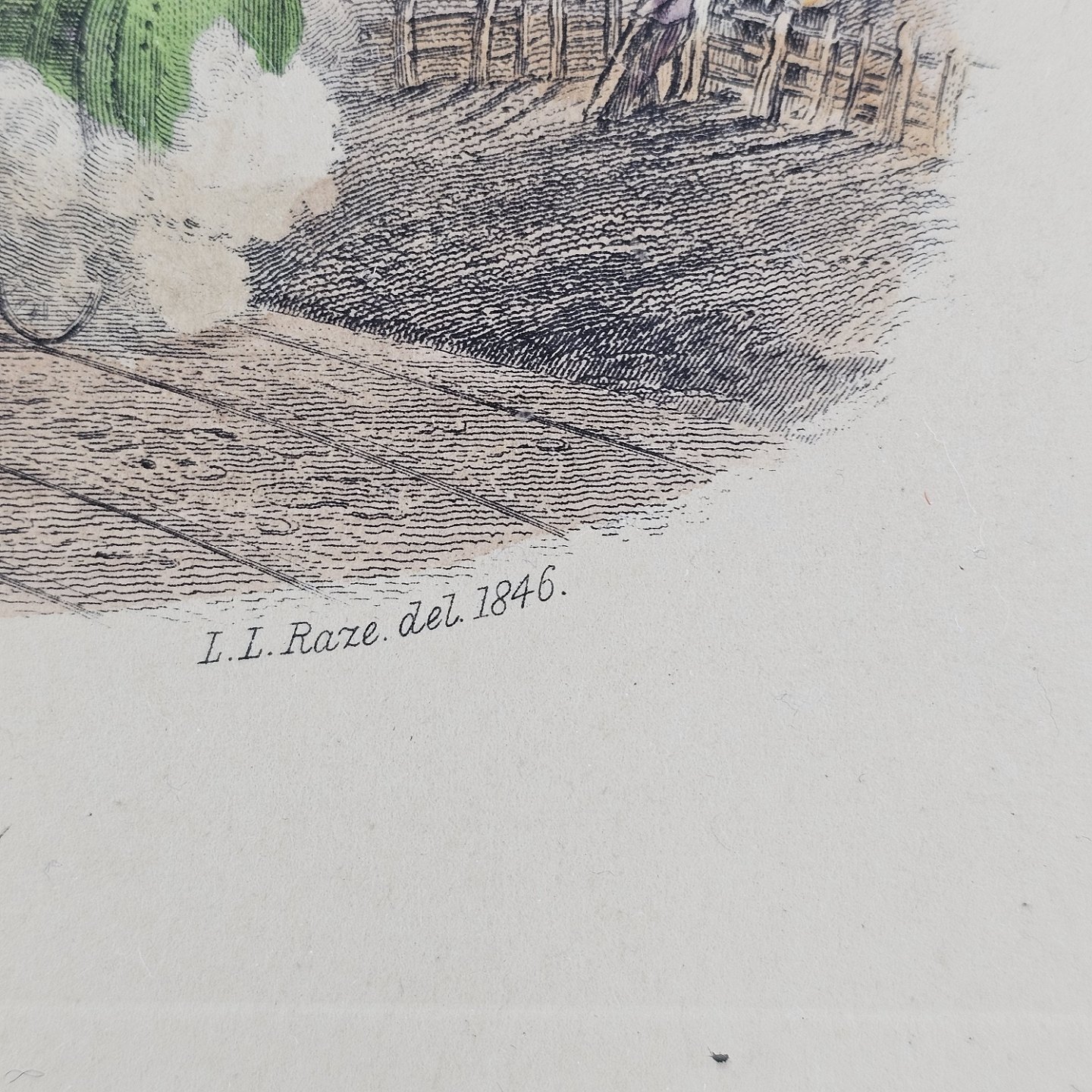Bogryk på papir med motiv af Canterbury by fra den sydøstlige jernbane, monteret i sort ramme