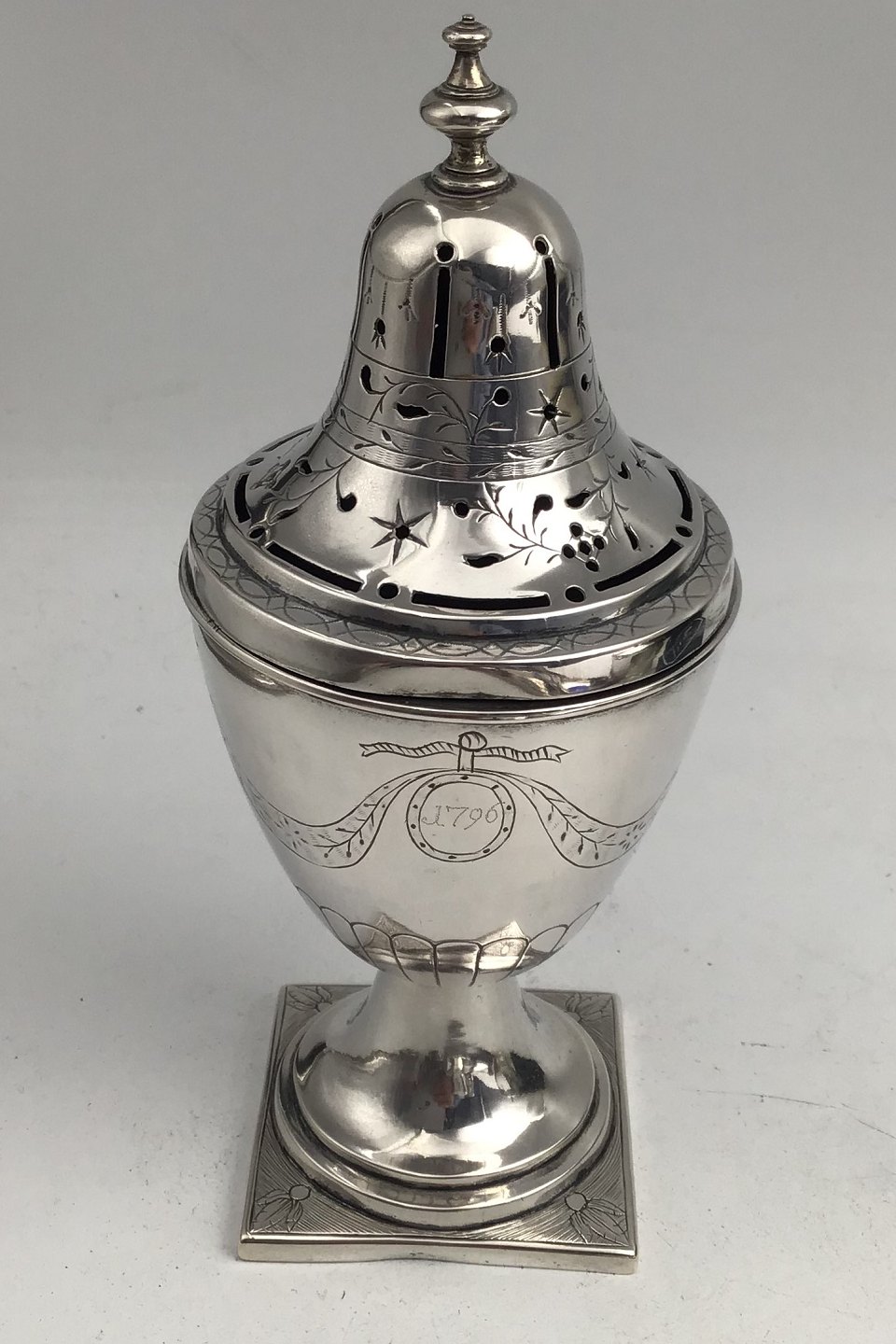 Måler H 17 cm (6.70 inch) Diam 7.3 cm (2.87 inch) Vægt 192.5 gr (6.79 oz) (Graveret 1796)