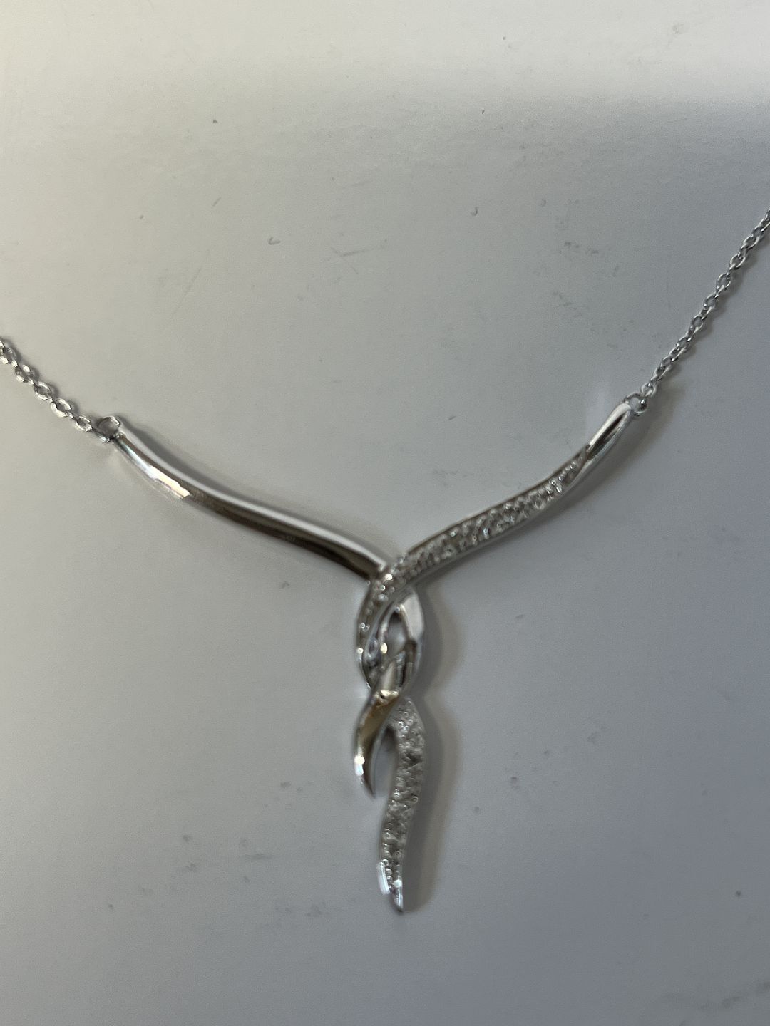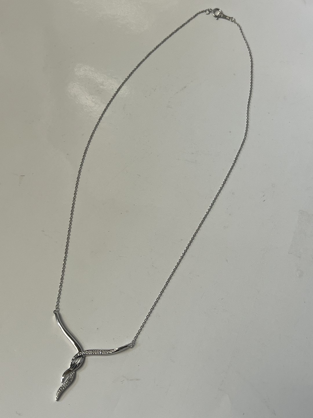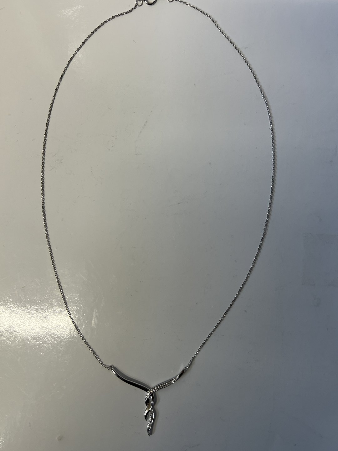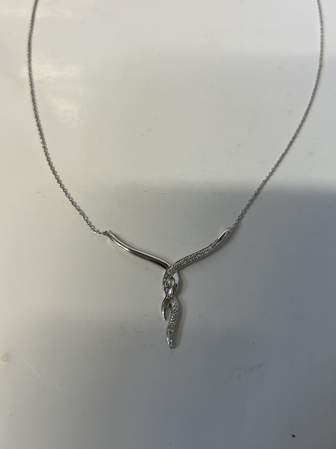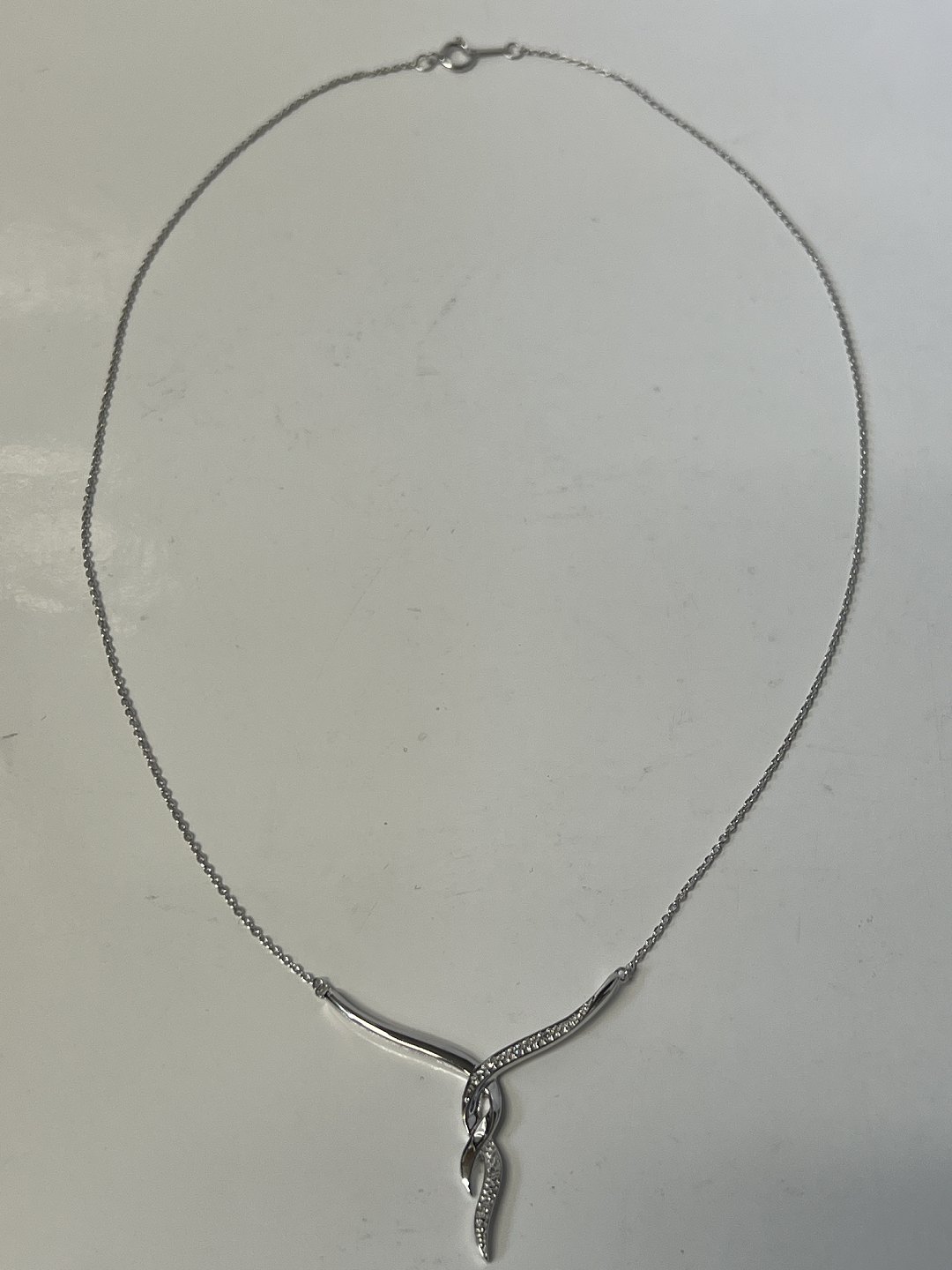 14 karat hvidguld Halskæde med vedhæng, med indlagte Diamanter.