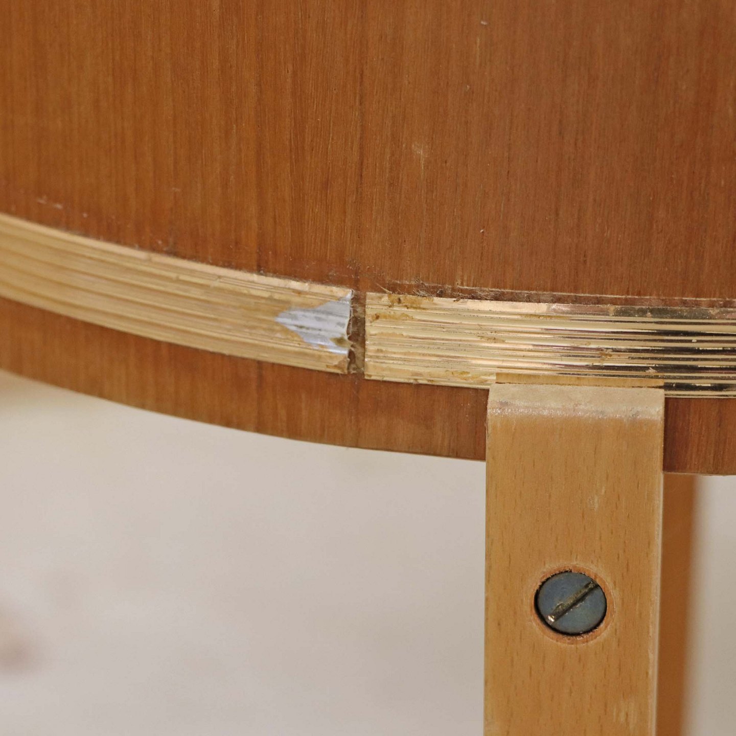 Fremstår med to revner i teaktræsrammen samt brugsspor på zinkplade og rammens yderside samt vandmærker nederst stellet.