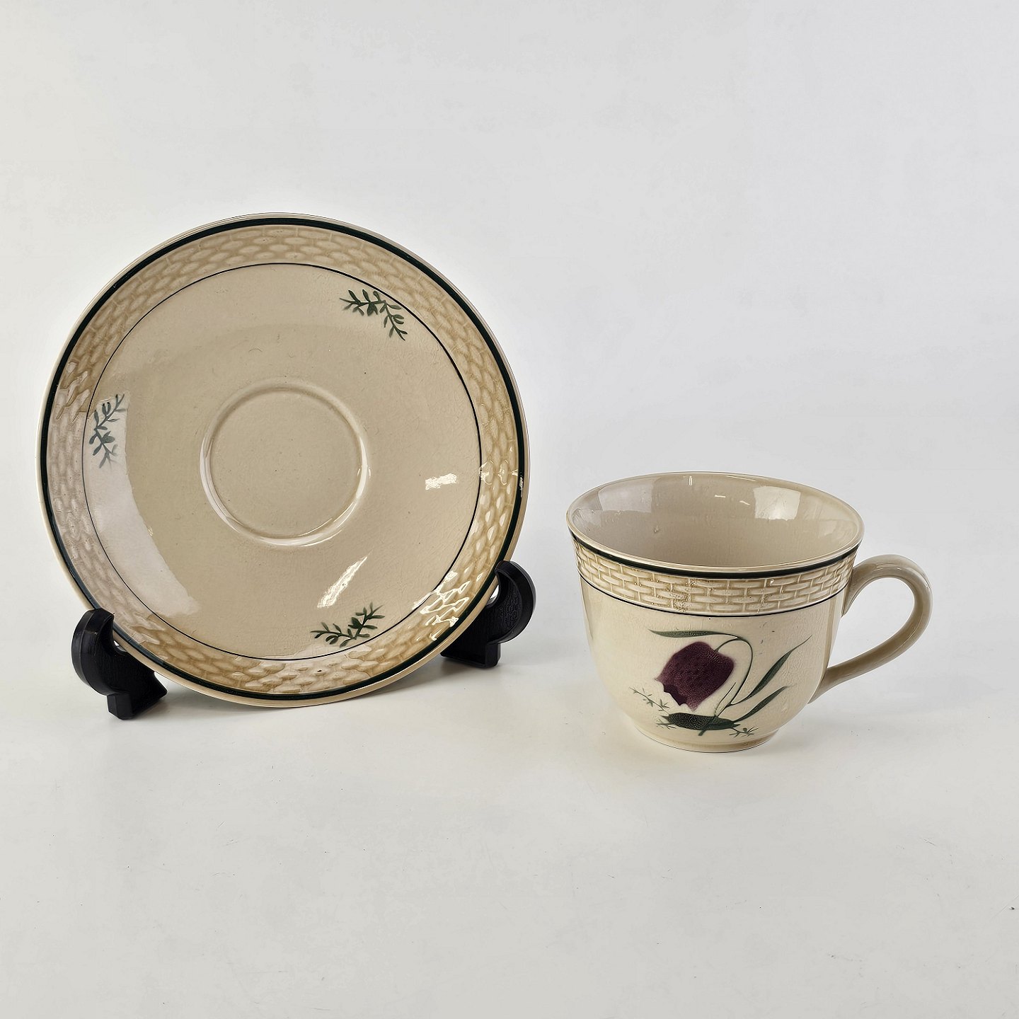 Kaffekop med underkop i fajance fra stellet Vibeæg