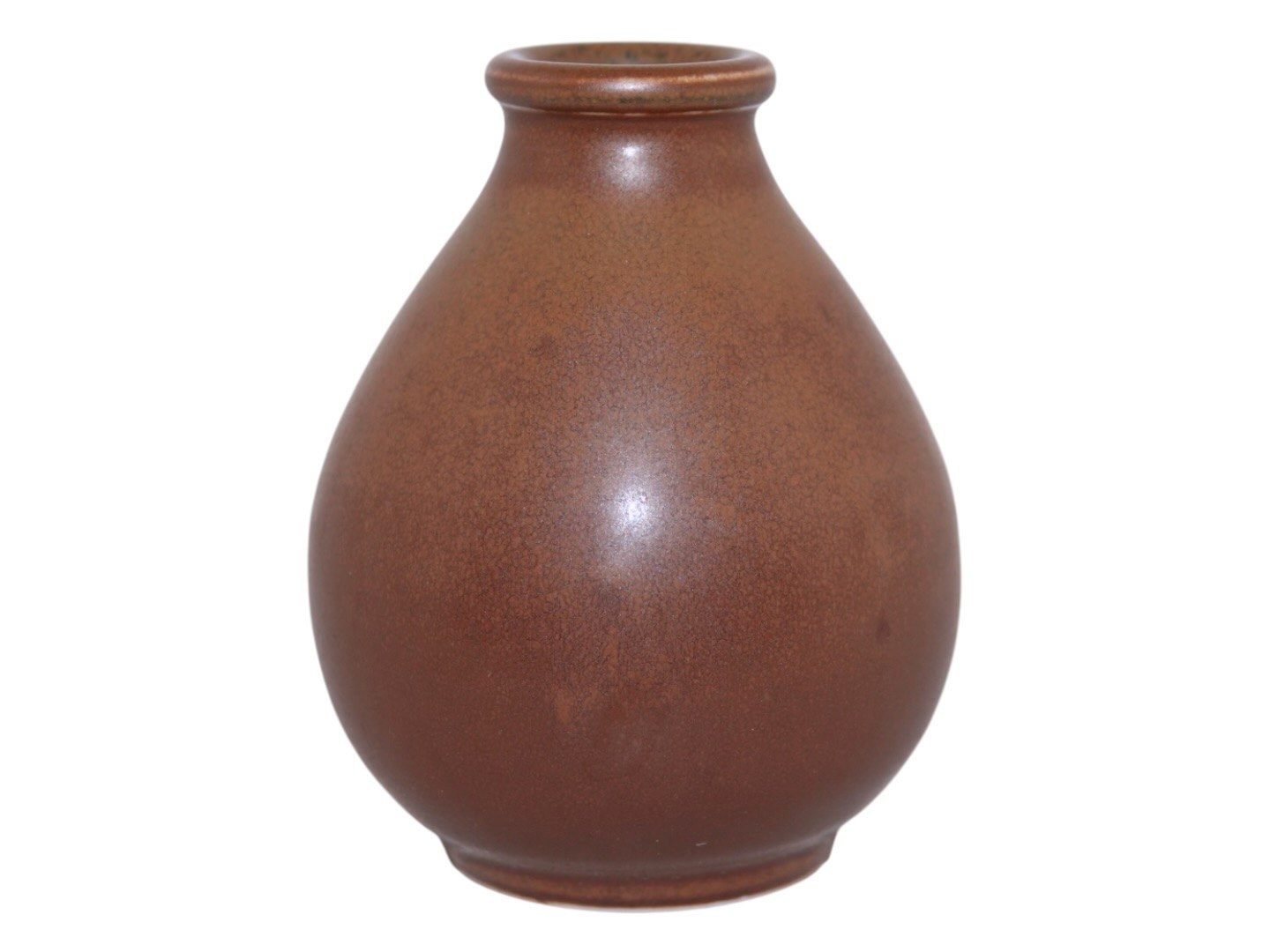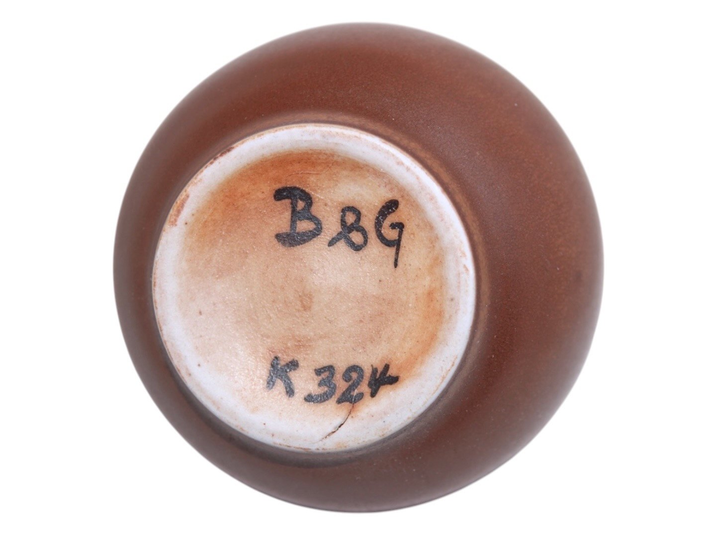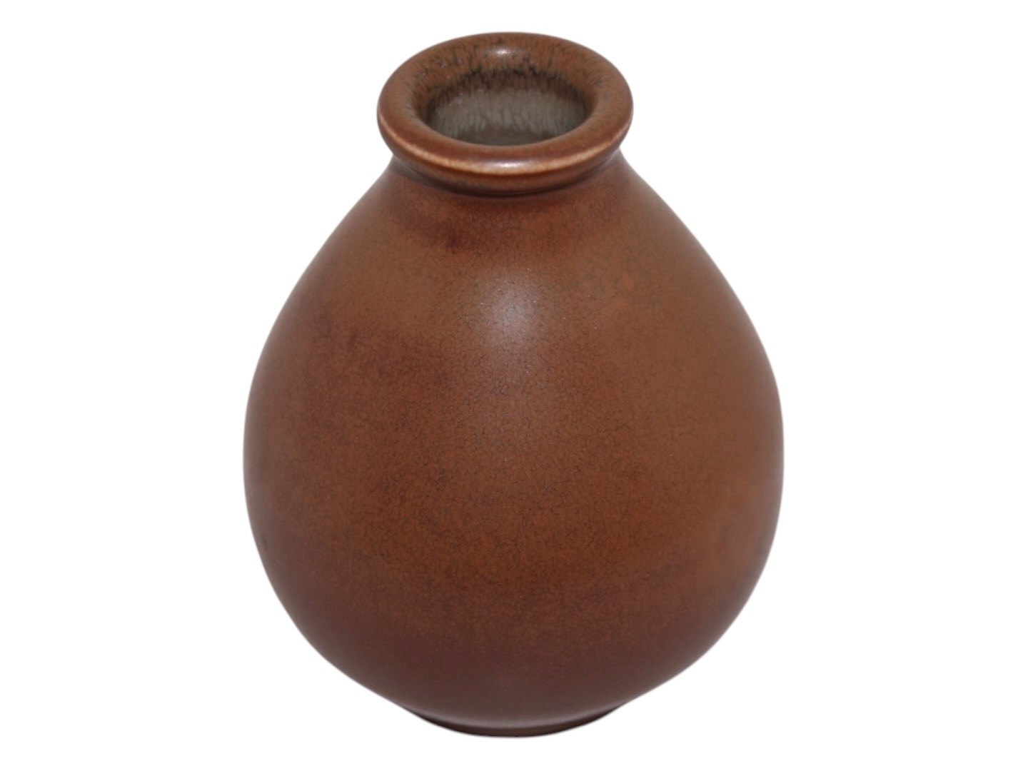 Lille Bing & Grøndahl keramikvase i enkel moderne stil med en lysebrun glasur.