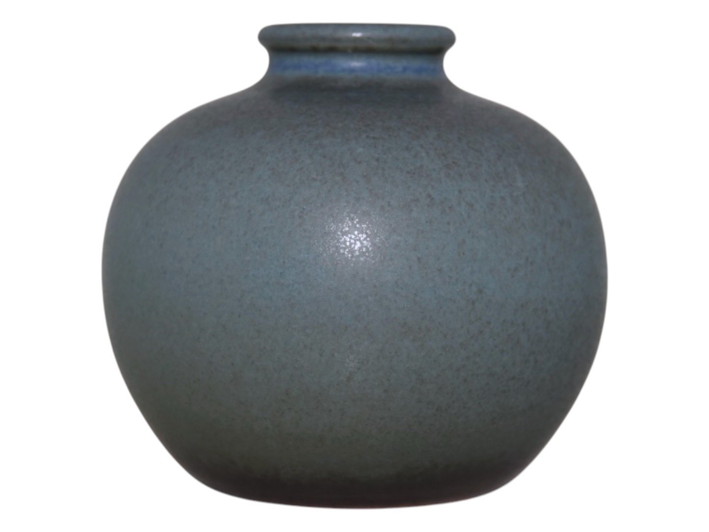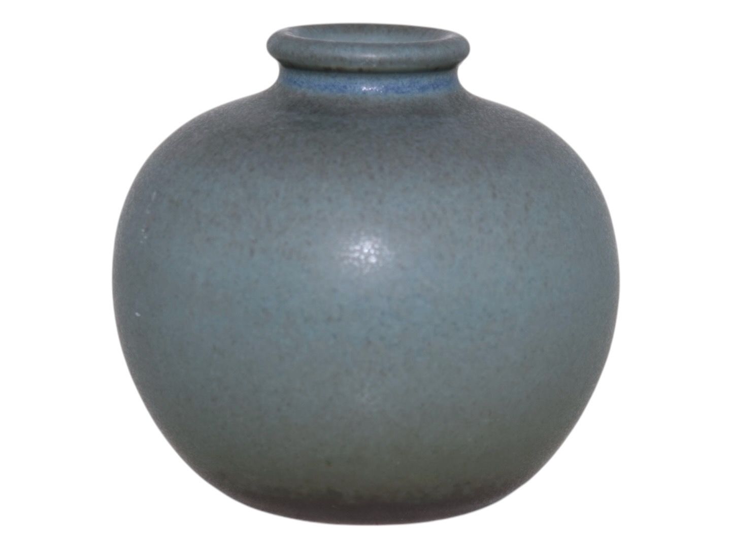 Lille Bing & Grøndahl keramikvase i enkel moderne stil med en blågrøn glasur.
